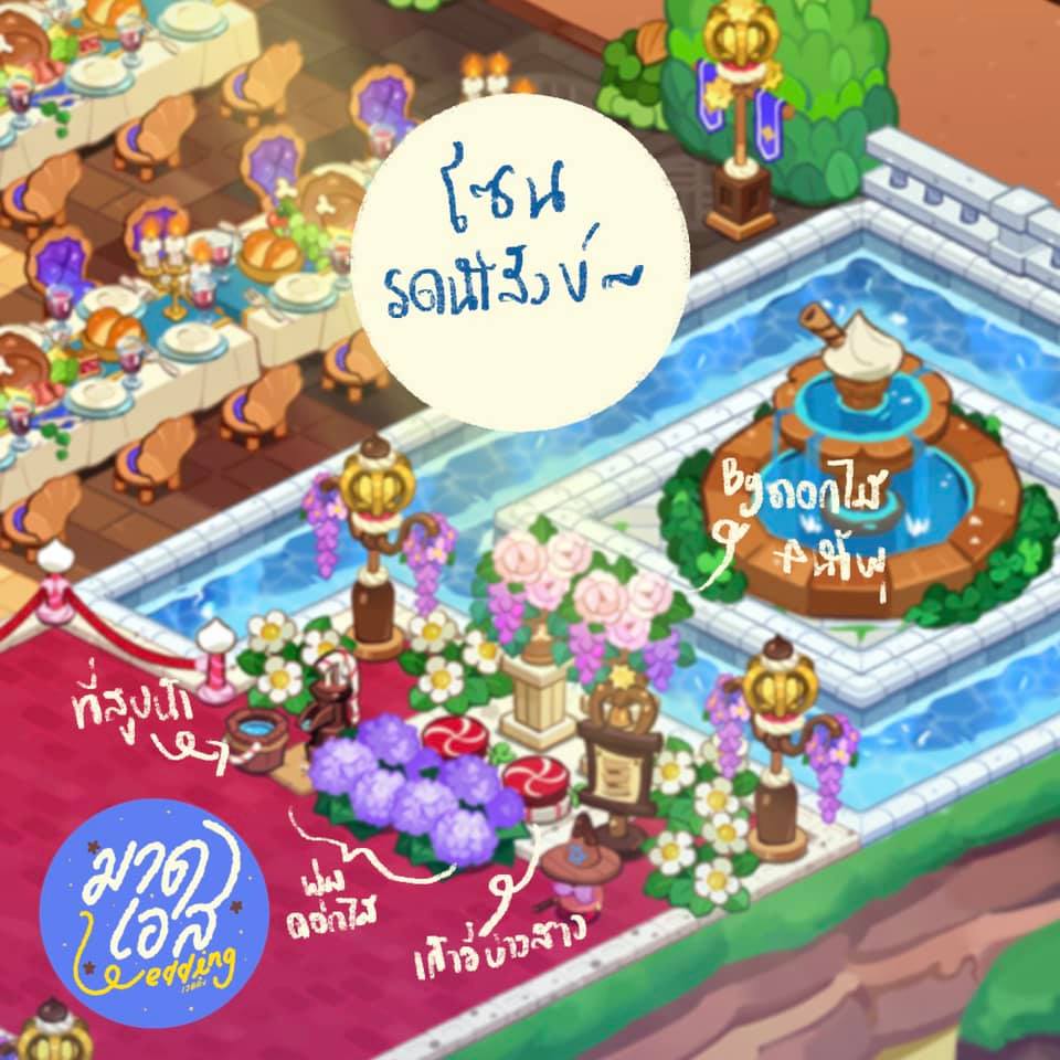 แถมบอกเลยว่างานนี้คุณ Chaya Chaya เธอใช้ระบบสร้างเมืองของ Cookie Run : Kingdom ได้เต็มประสิทธิภาพจริงๆ เพราะอย่างที่บอกไปว่านอกจากจะมีการสร้างสตอรี่เรื่องราวอย่างดีแล้ว ในส่วนของเรื่องประเพณีหรือสิ่งที่ควรจะต้องมีในงานแต่งงาน เพื่อให้ตัวงานแต่งนั้นออกสมบูรณ์แบบและดีที่สุด เธอก็ใช้ระบบสร้างเมืองของตัวเกม Cookie Run : Kingdom เนรมิตมันออกมาได้อย่างดีเยี่ยมสะเหลือเกินครับ