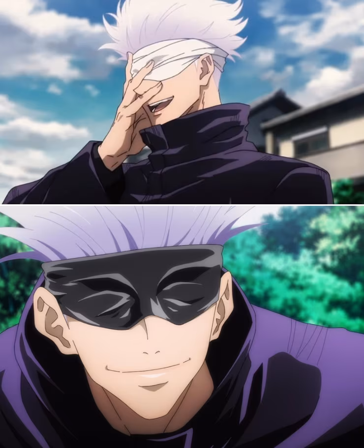 โดยทางอาจารย์ Gege ให้เหตุผลว่า การเปลี่ยนจากผ้าปิดตาที่คล้ายผ้าพันแผลเป็นผ้าปิดตาสีดำนั้น เหตุผลก็ง่ายมากๆ เพราะผ้าปิดตาสีดำนั้นวาดได้ง่ายกว่า เพราะตัวละคร Gojo เป็นตัวละครที่โดดเด่นมากในมังงะและปรากฏในหลายฉาก ดังนั้นทางอาจารย์จึงรู้ว่าเขาจะต้องวาดตัวละครนี้ค่อนข้างบ่อย เลยปิดตาตัวละครเสียเลย และการวาดชุดผ้าพันแผลนั้นมันน่าเบื่อเกินไป พอวาดๆ ไปแกก็เปลี่ยนมามาใส่แว่นจนสุดท้ายก็มาลงเอยที่ผ้าปิดตาสีดำ และการเปลี่ยนแปลงนี้ก็ถูกใจแฟนๆ ที่ผ้าปิดตามันทำให้พี่แกดูเท่และโดดเด่นขึ้น ส่วนเหตุผลแถๆ ที่อาจารย์คิดในเรื่อง ก็เพราะพลังของ Gojo นั้นคือดวงตา การมองด้วยตาจะทำให้แกเสียพลังไปโดยใช่เหตุ จะหลับตาตลอดเวลาก็ดูไม่เท่เลยต้องหาอะไรมาปิดตา นั่นคือเหตผลง่ายๆ ที่อาจารย์แกทำกับตัวละครนี้