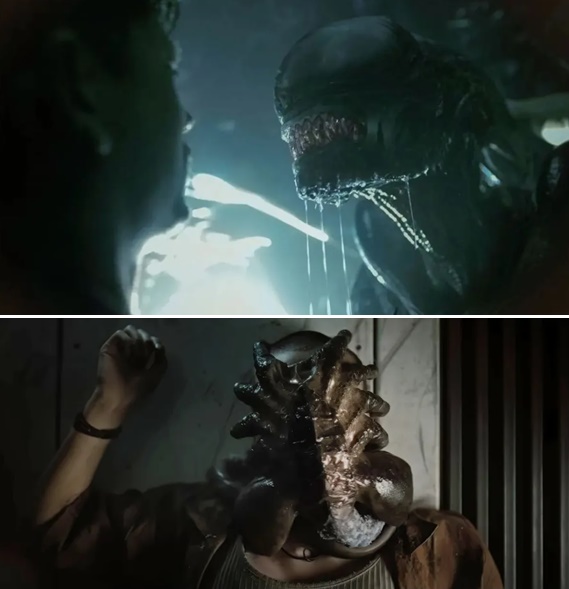 โดยก่อนหน้านี้ผู้เขียนเป็นคนหนึ่งที่เคยปรามาสภาพยนตร์ซีรีส์ Alien ว่ามันมาถึงทางตันแล้ว เพราะความหลอนสยองขวัญของปีศาจตัวนี้มันแทบจะไม่มีมุกมาเล่นแล้ว ทั้งแบบเอเลี่ยนตัวเดียวกับตัวละครไร้ทางสู้ กลุ่มทหารที่สู้เอเลี่ยน กองทัพเอเลี่ยนหลายสิบตัว เอเลี่ยนสายพันธุ์ใหม่ที่ต่างจากเดิม ไปจนถึงเอาเอเลี่ยนมาสู้กับนักล่าอวกาศ ก็มีมาครบหมดแล้ว พอมา Alien Romulus ทางผู้กำกับก็คิดใหม่ทำใหม่สร้างความน่ากลัวที่ไม่ใช่มาจากตัวเอเลี่ยนอย่างเดียวแบบภาคก่อน แต่มันคืออุปสรรคที่ตัวเอกต้องเจอโดยมีเอเลี่ยนเป็นตัวประกอบที่ผสมรวมกันได้อย่างลงตัว รวมถึงการกระจายความน่ากลัวให้กับพวก เฟซฮักเกอร์ ที่กระโดดเกาะหน้าเพื่อวางไข่ ที่ในภาคก่อน ๆ มันคือตัวประกอบไม่มีบทอะไร แต่คราวนี้พี่แกโคตรเด่น
