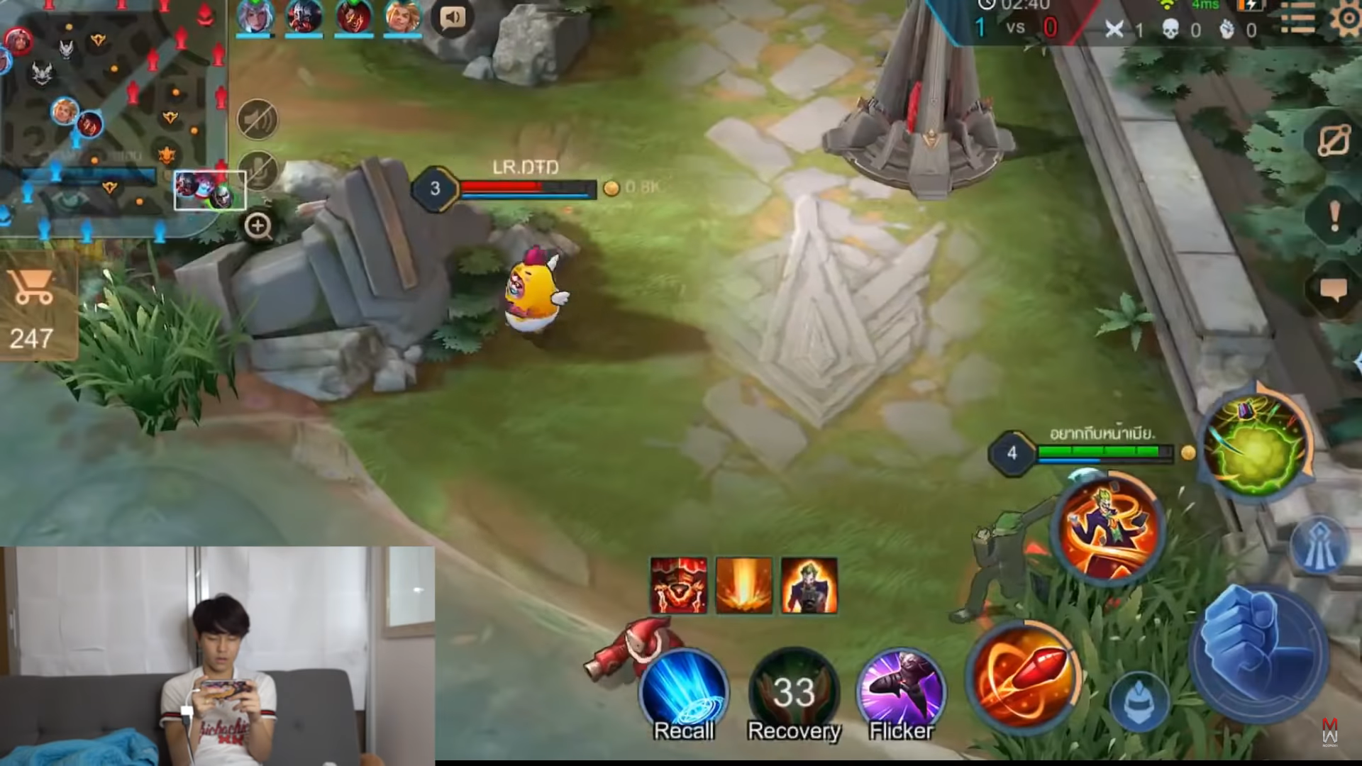 ต้องบอกเลยว่าการ "ดักพุ่ม" ที่หลายๆคนอาจจะมองเป็นเรื่องเล็กๆน้อยๆ แต่ถ้าคุณเล่นจนถึงแรงค์ระดับสูง แล้วการที่จะเล่น Joker ให้กด Violet ให้จมเลนแบบที่ Moowan ทำได้แบบนี้ ไอเรื่องเล็กน้อยนี้แหละครับ "สำคัญที่สุด" เพราะถ้าคุณยืนเลนแบบไม่ดักพุ่มอะไรเลยแล้วให้ Violet ยืนตอดเรื่อยๆ ก็จะกลายเป็นคุณโดนกดเลนสะเองครับ และที่สำคัญคือความแม่นในการใช้สกิล 1 ของคุณ เรื่องนี้สำคัญมากๆเช่นกันครับ ดังนั้นการที่คุณจะเล่น Joker ให้กด Violet ได้ ก็ต้องอาศัยความชำนาญและสกิลเพลย์ในส่วนนึงด้วยครับ!