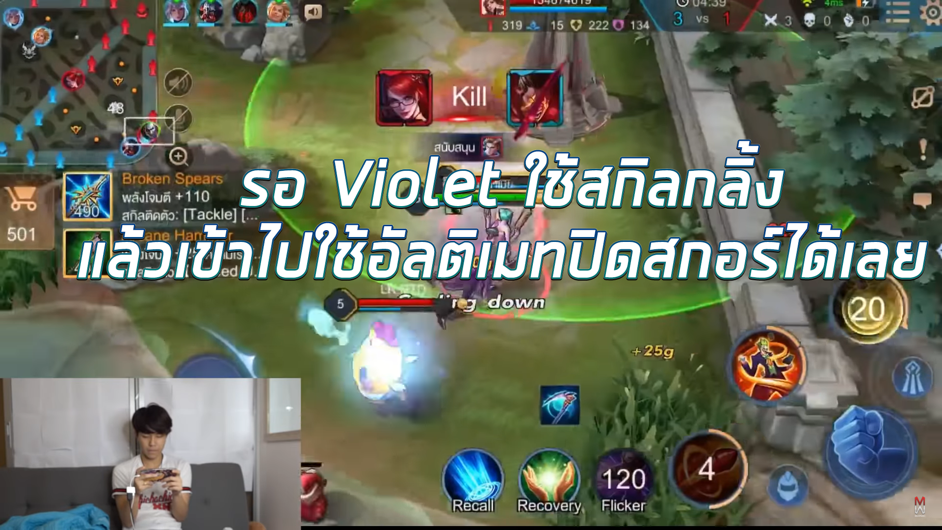 *ต้องบอกก่อนเลยนะครับว่าการที่จะกดเลนมันขึ้นอยู่กับสถานการณ์ในเกมนั้นๆและรวมถึงความแม่นในสกิลช็อตของเราด้วย อย่างเช่นโรมมิ่งฝั่งตรงข้ามสามารถโซนให้ Violet ได้ดี ก็จะทำให้การกดเลนของเราทำได้ยากขึ้นครับ หรือป่าฝั่งตรงข้ามมาทำเลนเราบ่อยก็ส่งผลให้เราเล่นยากขึ้นเช่นกันครับ