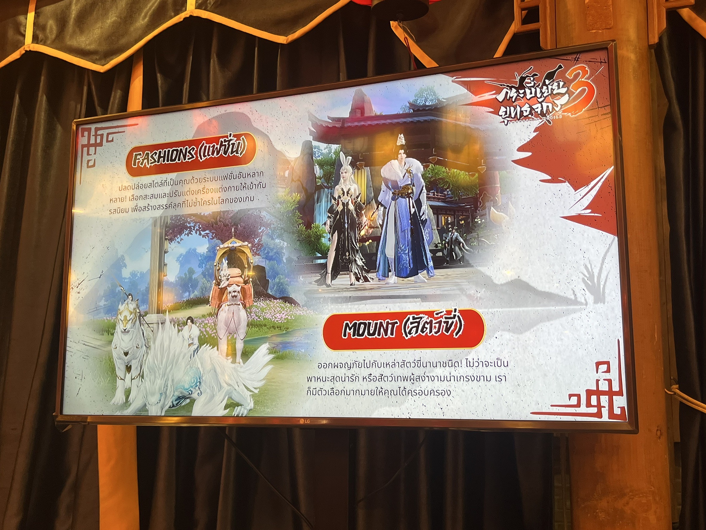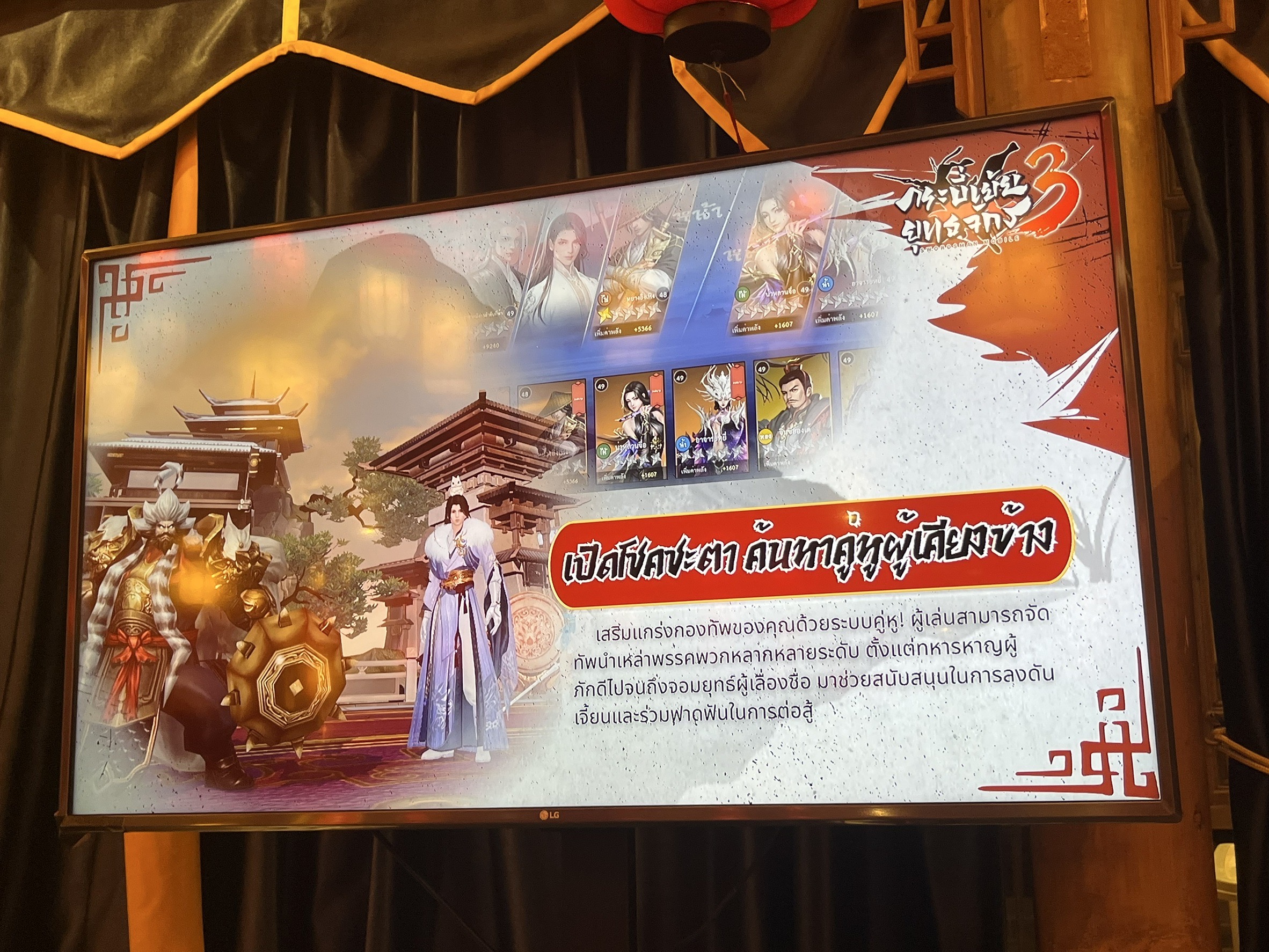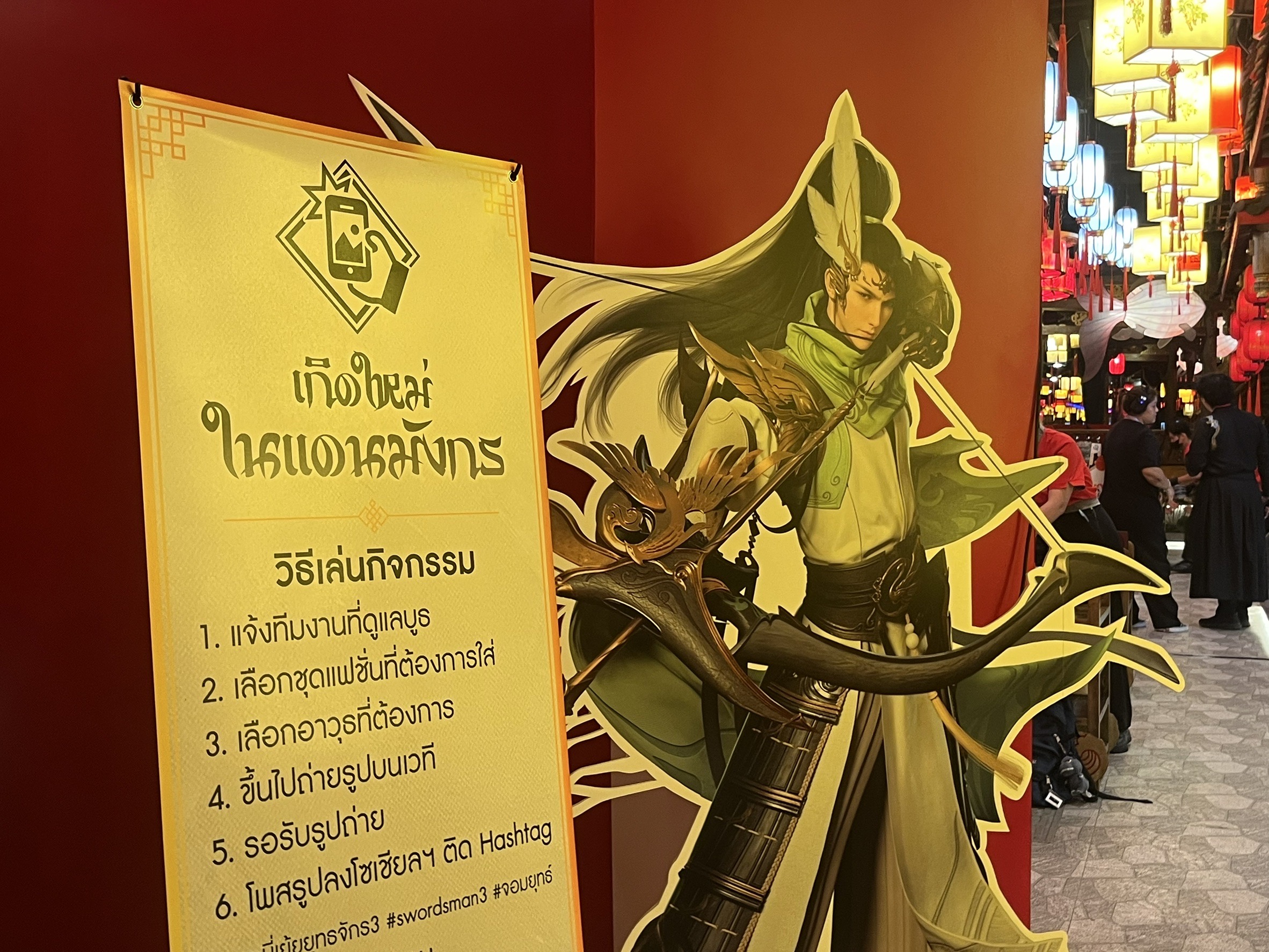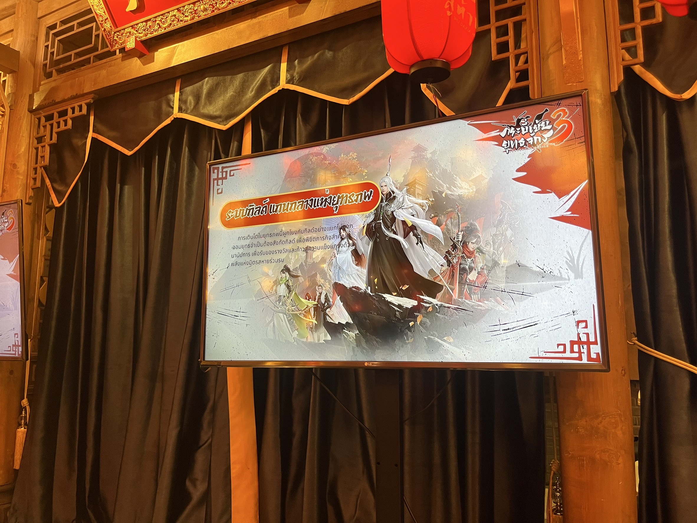บรรยากาศภายในงานต้องบอกว่าเต็มไปด้วยกลิ่นอายของเหล่าจอมยุทธ์ที่มารวมตัว ณ ร้านอาหารแห่งนึงในโลกที่เต็มไปด้วยเหล่าจอมยุทธ์มากหน้าหลายตาที่มารวมตัวกันเพื่อรอออกผจญภัยท่องโลกกว้างในโลกแห่งยุธจักรไปพร้อม ๆ กันในย่านโคมแดงก็มิปานแถมตอนนี้ตัวเกม "กระบี่เย้ยยุทธจักร 3" ก็ได้เปิดให้ลงทะเบียนล่วงหน้า