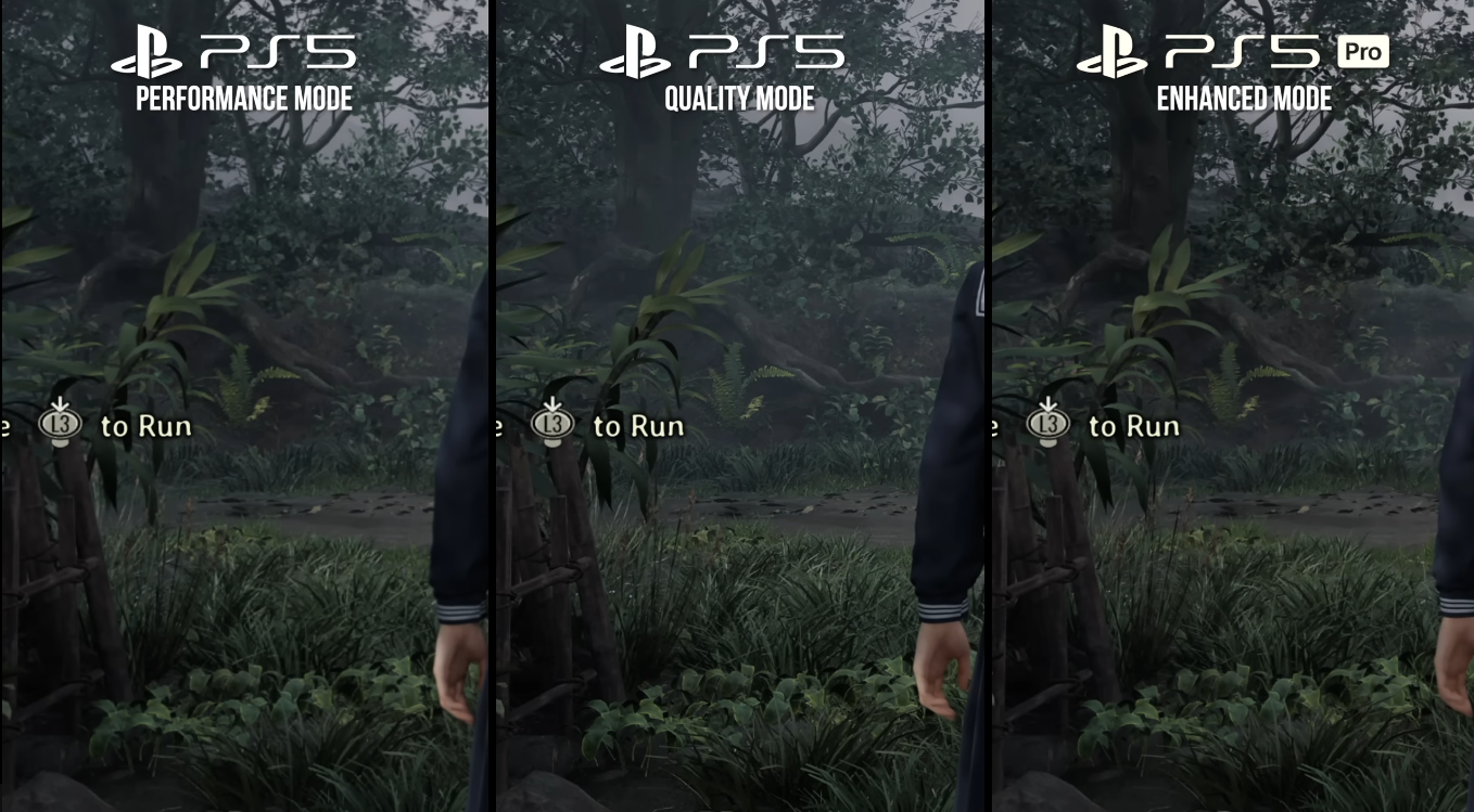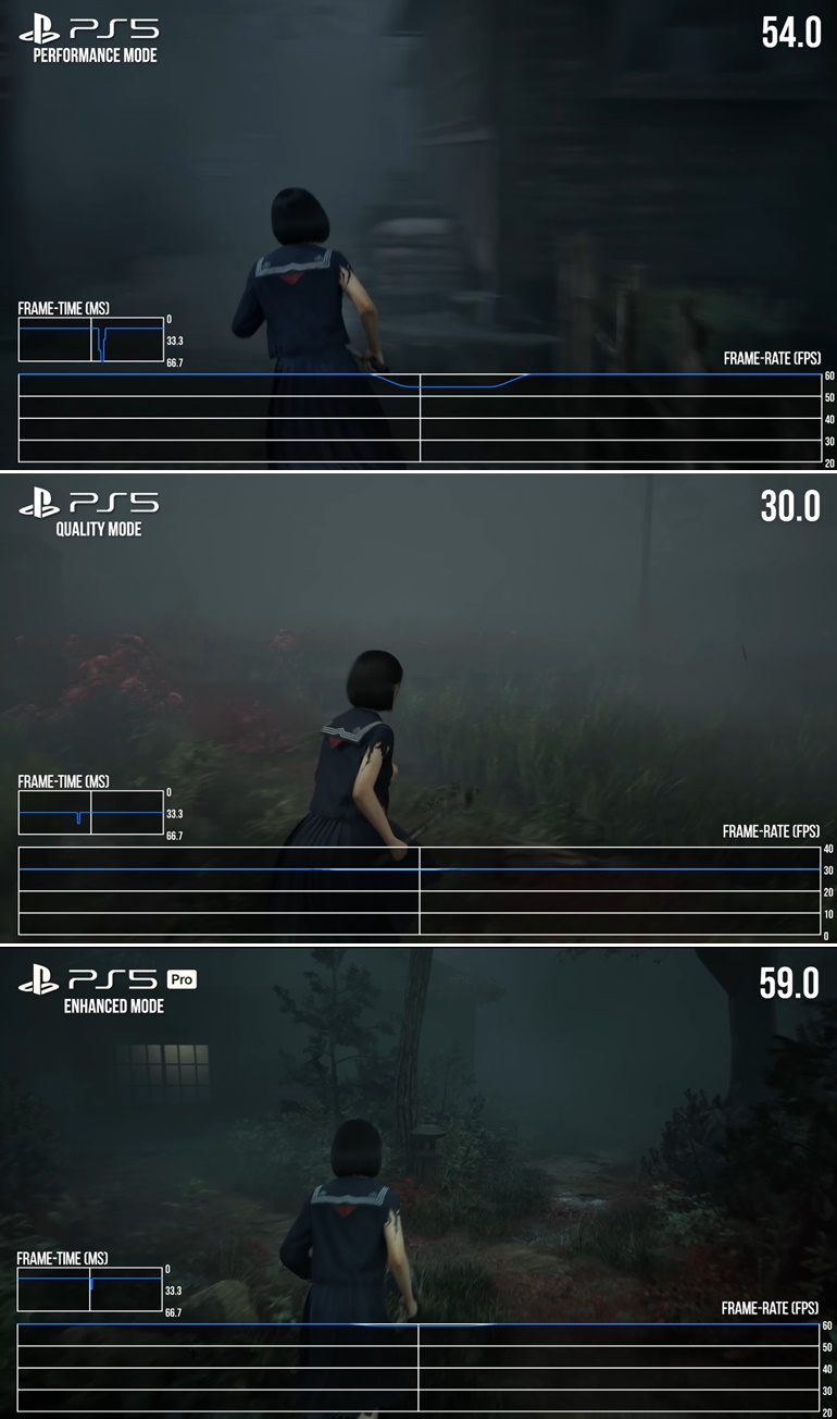 จากข้อมูลการวิเคราะห์ทางเทคนิคล่าสุดจากทาง Digital Foundry เปิดเผยว่าผู้เล่น PlayStation 5 ตัวปกติจะมีตัวเลือกระหว่างโหมดคุณภาพ Quality ที่เล่นได้ 30fps และโหมดประสิทธิภาพอย่าง Performance ที่เล่นได้ 60fps ซึ่งเป็นตัวเลือกปกติที่คนเล่นเกมทราบดี แต่บน Silent Hill f บน PS5 Pro จะไม่มีตัวเลือกอื่นนอกจากการเล่นในโหมด Enhanced เพียงโหมดเดียว ที่จะเป็นการผสมผสานทั้งสองโหมดเข้าด้วยกัน (ภาพสวยและลื่น) แถมมีการอัปสเกลด้วย AI ของ PSSR ที่เล่นภาพสวยและลื่นแบบ 60fps แต่ก็ยังมีปัญหาที่เห็นได้ชัดอยู่บ้างหญ้าที่ไม่ชัดแสงเงาที่เป็นรอยหยักรวมถึงแสงสะท้อนไม่สวยตามระดับเครื่อง ซึ่งมันทำได้แย่กว่า PlayStation 5 ตัวปกติเสียอีก