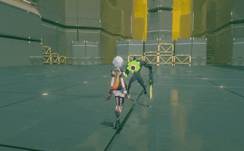 เมื่อเริ่มยิงเลเซอร์จะทำให้เกิด [ซัปพอร์ตอย่างรวดเร็ว]; หลังจากยิงอย่างต่อเนื่องเป็นระยะเวลาหนึ่ง จะทำให้กำลังการยิงเพิ่มขึ้น พร้อมกับทำให้ท่านี้มีเลเวล Interrupt เพิ่มขึ้นอย่างมาก เมื่อถูกโจมตีระหว่างยิงเลเซอร์ จะตั้งรับการโจมตีของศัตรูและเพิ่มกำลังการยิงโดยทันที