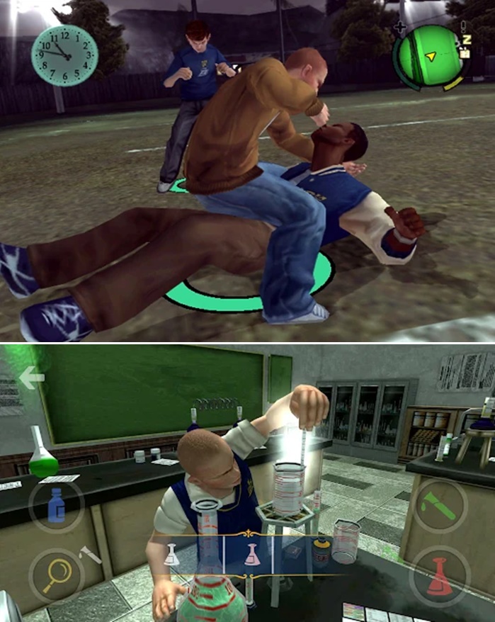 ในส่วนของระบบการเล่นเราจะมีอิสระในรั้วโรงเรียน ที่สามารถรับภารกิจต่าง ๆ จากเพื่อนทั้งการช่วยเหลือผู้คนแกล้งครู และเข้าเรียนในวิชาต่าง ๆ ตามที่เกมกำหนด ซึ่งการเข้าเรียนในแต่ละครั้งเราก็จะได้ค่าพลังที่สูงขึ้นในการทำภารกิจ แต่สิ่งที่เป็นจุดขายจริง ๆ ของเกมนี้คือเนื้อเรื่อง ที่มีทั้งเพื่อนรักหักเหลี่ยมโหด การหักมุมของเนื้อหา ตัวละครมีมิติน่าสนใจ ไปจนถึงเรื่องราวหลักที่เป็นการพิสูจน์ตัวเองของจิมมี่ที่ต้องการบอกว่า คนหน้าตาดูไม่ดีอย่างเขาก็เป็นคนดีได้ ส่วนคนหน้าตาดีท่าทางดีก็เป็นคนเลวได้ บอกเลยว่าเนื้อเรื่องดีกว่า GTA บางภาคเสียอีก และด้วยความที่เกมไม่มีความรุนแรง แต่ก็ยังระบบต่อสู้ใส่มาซึ่งมันก็ทำให้เกมสนุกน่าสนใจ จนหลายคนยกให้เป็นเกมที่ชื่นชอบอีกเกมเลยทีเดียว แต่ด้วยความซ้ำซ้อนกับเกม GTA และเนื้อหาที่ไม่สดใหม่แบบในอดีตทาง Rockstar Games จึงไม่คิดจะทำภาคต่อออกมา