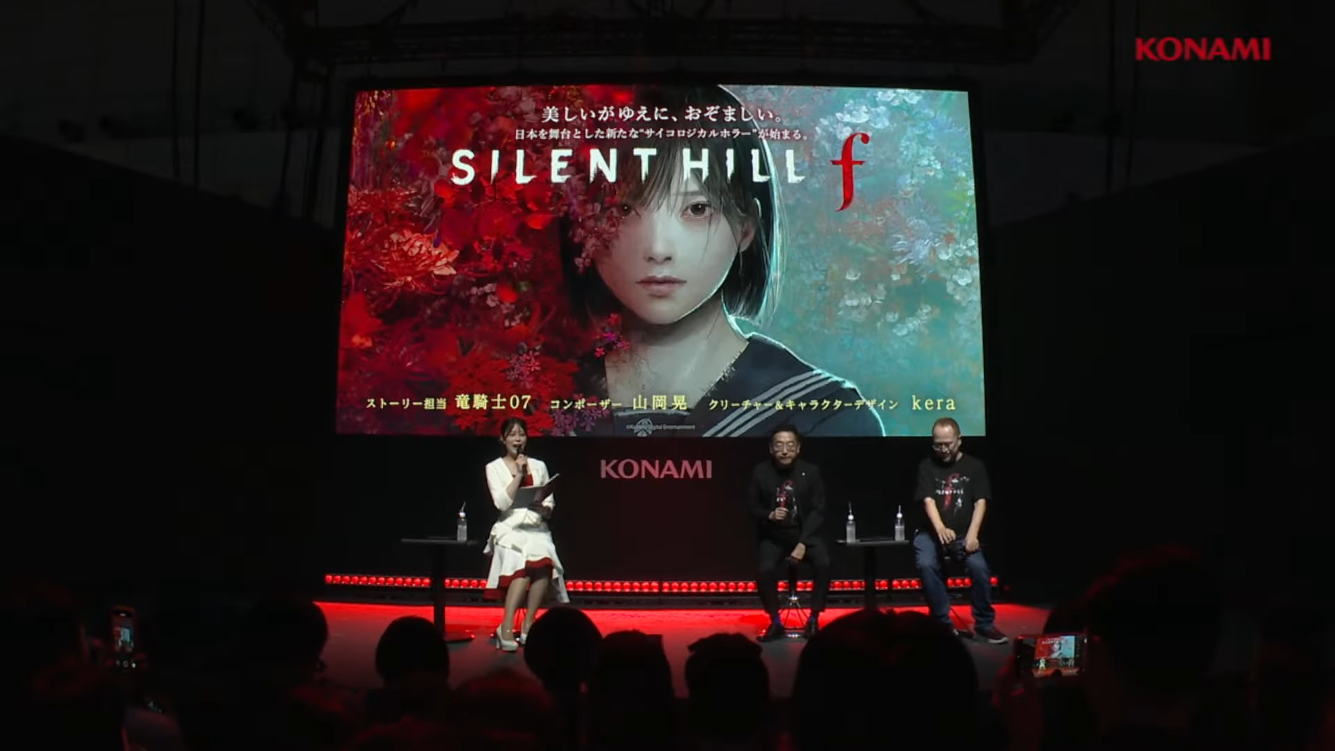 คุณ Motoi Okamoto ผู้อำนวยการสร้างเกม Silent Hill f และ คุณ Ryukishi07 นักเขียนเจ้าของผลงานมังงะสยองขวัญชื่อดัง "แว่วเสียงเรไร" (Higurashi no Naku Koro Ni) ที่เป็นผู้เขียนเนื้อเรื่องเกมภาคนี้ ได้ขึ้นให้สัมภาษณ์บนเวทีของ Konami ภายในงาน Tokyo Game Show 2025 ที่ผ่านมา