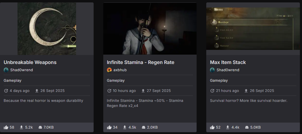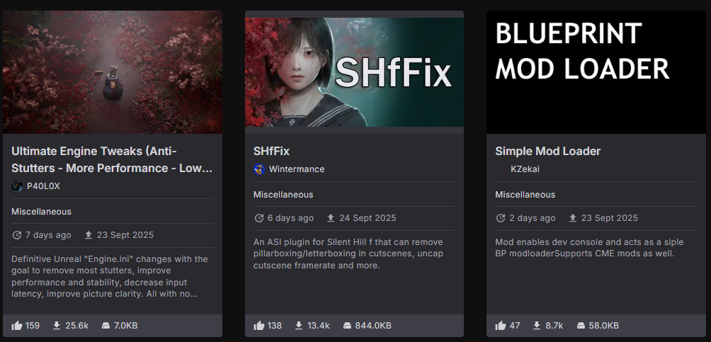 เรียกว่ามาแรงฉุดไม่อยู่เลยทีเดียว กับภาคใหม่ล่าสุดของตำนานเมืองห่าผีสุดหลอนอย่าง Silent Hill f ที่คราวนี้ได้ย้ายซีกโลกมาหลอนกันในญี่ปุ่น ซึ่งเป็นเรื่องราวก่อนเกมภาคแรกจะเริ่มต้นหลายสิบปี กับเรื่องราวในหมู่บ้านเล็ก ๆ ของญี่ปุ่นที่เด็กสาวนามว่า ฮินาโกะ ต้องเอาชีวิตรอดไปจากเมืองห่าผีนี้ พร้อมกับการค้นหาความจริงที่เกิดขึ้นกับตนว่ามันคืออะไร ซึ่งถ้าใครที่ติดตามข่าวสารของเกมนี้มาจากผู้เล่นคนอื่น ๆ ที่ลองเกมนี้ไปแล้ว คงจะทราบดีว่าตัวเกมภาคนี้จะค่อนข้างยากพอตัว เรียกว่ามือใหม่อาจจะเล่นไม่จบกลางทางได้เลย ขณะที่มือเก่าก็จะเจอปัญหาอาวุธพังง่ายที่น่ารำคาญ ไม่ก็ค่าพลังที่มีน้อยจนเล่นไปหงุดหงิดไป ซึ่งพอเป็นแบบนั้นทางเหล่านักสร้าง Mod เลยพร้อมใจกันทำ Mod อาวุธไม่พังและเกมง่ายขึ้นให้ชาว PC ได้ไปใช้จนมันติดอันดับต้น ๆ Mod ที่คนใช้เยอะสุดใน Nexus Mods ไปแล้ว