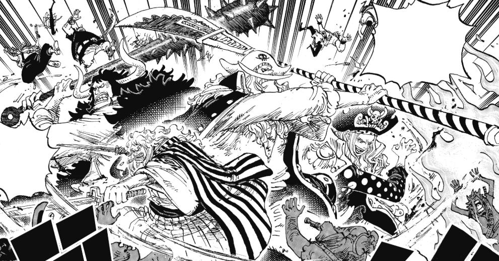 กำลังสนุกตื่นเต้นกันเลยทีเดียวกับ One Piece ช่วงนี้ ซึ่งเมื่ออาทิตย์ที่แล้วเราต้องได้อ่านตอนที่ 1162 แต่อาจารย์ โอดะ ป่วยกระทันหันเลยทำให้มาลงอาทิตย์นี้ ส่วนอาทิตย์หน้าก็ของดอีกครั้ง เหมือนอาจารย์แกจะมาปั้นตอนนี้ให้เสร็จจะได้พักต่อ โดยในตอนที่แล้วเราได้เห็น ดราก้อน ที่พาเด็กแฝดหนีมาก่อนที่ แชมร็อก ถูก ธิดามัฟฟี่ เอาตัวไปส่วนดราก้อนได้ แชงค์ส ไป ขณะที่ฝั่ง หนวดขาว ไคโด และ บิ๊กมัม ก็ถูกเหล่าโจรสลัดโอตะมารุมทำร้ายเพราะอยากได้ชื่อเสียงมากการเป็นโอตะ ขณะที่ การ์ป ก็มาร่วมสู้กับพวก โรเจอร์ ก่อนที่จะเกิดเป็นการชุลมุนกันมั่วไปหมด ในตอนท้าย เรย์ลีห์ ก็ช่วย แช็คกี้ ออกมาได้นั่นคือเรื่องราวในตอนที่แล้ว เรามาดูกันว่า One Piece ตอนที่ 1162 มีอะไรน่าสนใจบ้างมาดูกัน