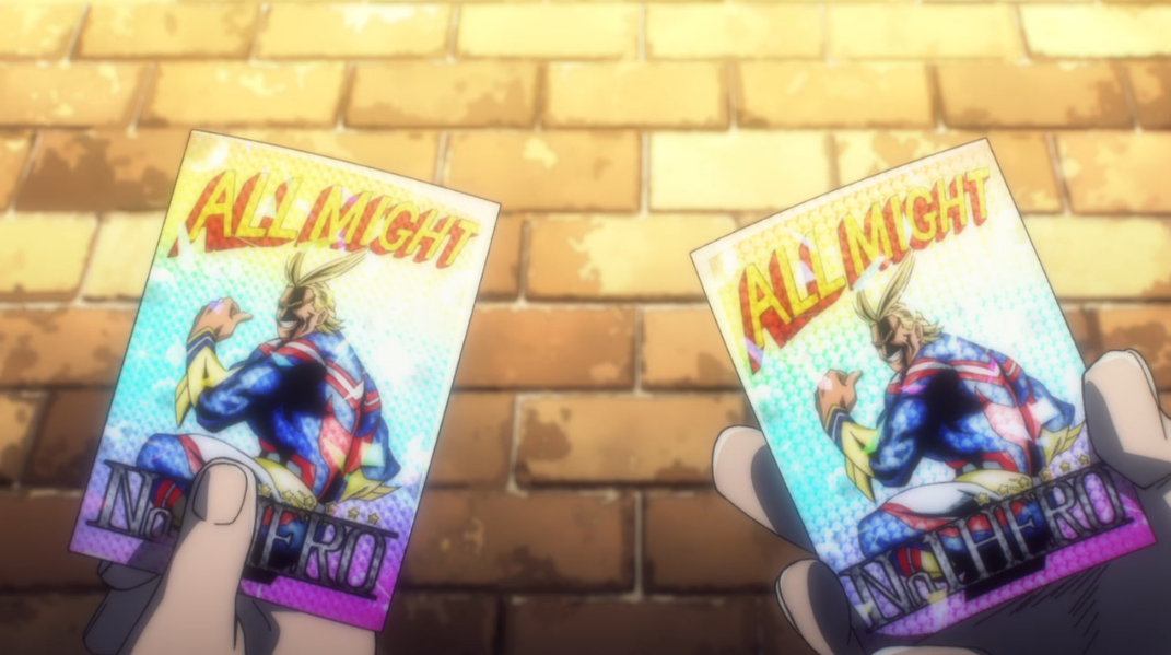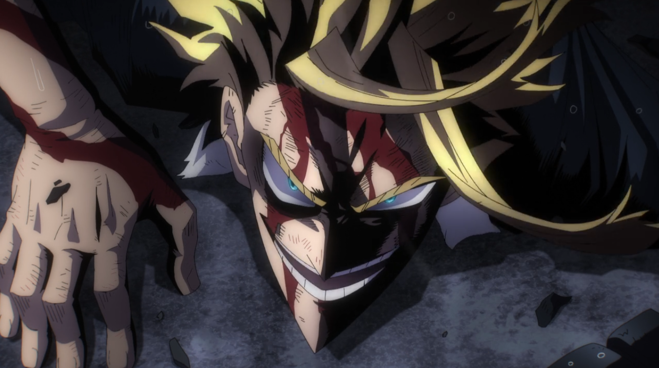 และด้วยความที่ All For One เจ็บมาเยอะเลยกันทุกทางเอาไว้ ขนาดที่มีอัตลักษณ์เปลี่ยนเลือดตัวเองเพื่อกันสเตนเลยทีเดียว และความสามารถของสเตนก็เป็นหนึ่งสิ่งที่ All For One ต้องการ และในช่วงวินาทีแห่งความความเป็นความตาย All Might ที่รู้อยู่แล้วว่าตนเองต้องตายอย่างทรมานแสนสาหัส เขาก็เตรียมตัวรับผลนั้นแล้ว แต่ All Might ก็ไม่เสียใจเพราะระหว่างทางที่เขาเดินไปนั้น ได้ทิ้งแสงสว่างเอาไว้เพื่อให้คนรุ่นหลังสานต่อสิ่งที่เขาทำเอาไว้เพื่อสร้างอนาคตต่อไป ซึ่งนี่จะเป็นจุดสิ้นสุดของยุคสมัยเก่า แต่จะเป็นจุดเริ่มต้นของยุคสมัยใหม่ที่ All Might และฮีโรคนอื่น ๆ ปูทางมาจนถึงตอนนี้