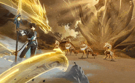 สร้าง DMG กายภาพแก่ศัตรูทั้งหมด และมอบโล่ที่สามารถบล็อก DMG ให้กับฝ่ายเราทั้งหมด โดยขึ้นอยู่กับ ATK ของ "Dan Heng - จ้าวทระนงคงปฐพี" ต่อเนื่องภายในเทิร์นจำนวนหนึ่ง และเมื่อได้รับโล่ของ "Dan Heng - จ้าวทระนงคงปฐพี" ซ้ำ ปริมาณโล่นั้นจะสามารถซ้อนทับได้ สกิลต่อสู้ในปัจจุบัน โดยสูงสุดไม่เกินอัตราส่วนจำนวนหนึ่งของปริมาณโล่จากสกิลต่อสู้ในปัจจุบัน อีกทั้งทําให้ "จิตวิญญาณมังกร" ได้รับการเสริมพลัง โดยเมื่อ "จิตวิญญาณมังกร" แอ็กชัน จะปล่อยการโจมตีต่อเนื่องซึ่งสร้าง DMG กายภาพกับ DMG เพิ่มเติมในประเภทที่สอดคล้องกับ "สหาย" ตาม ATK ของ "สหาย" แก่ศัตรูทั้งหมด โดยการเสริมพลังนี้ จะคงอยู่ในแอ็กชันจำนวนหนึ่งของ "จิตวิญญาณมังกร"