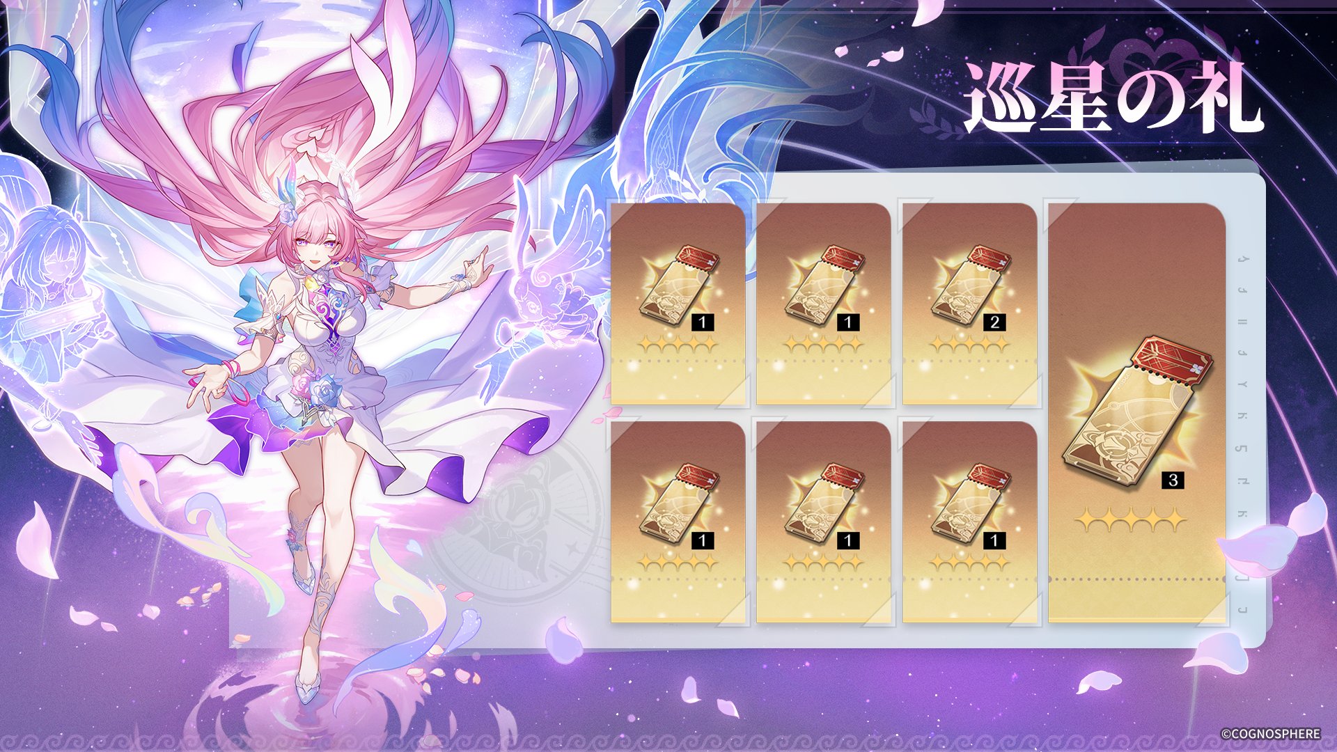 ตามธรรมเนียมของ Honkai Star Rail ในทุกๆแพตช์ กิจกรรมของขวัญจากดวงดาวเมื่อล็อกอินในแต่ละวัน จะสามารถรับรางวัลประจำวันโดยเมื่อสะสมครบ 7 วัน จะได้รับ Star Rail Special Pass จำนวน 10 ทันที