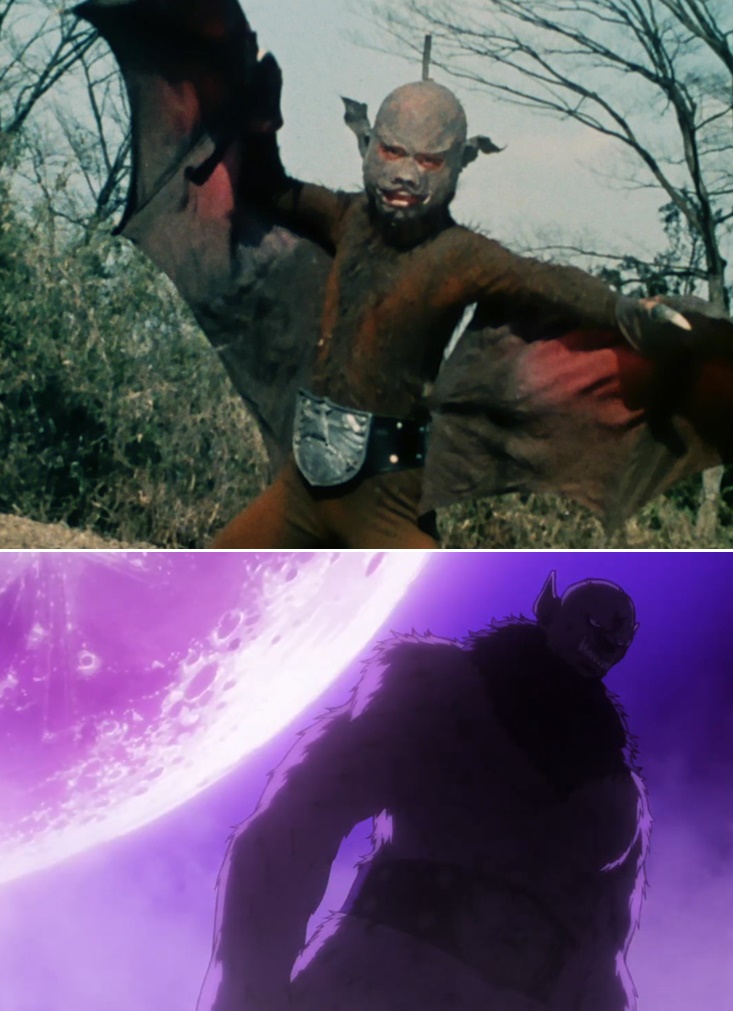 ต่อมาคือเรื่องของ ปีศาจค้างคาว หรือจริง ๆ ต้องเรียกว่า มนุษย์ดัดแปลงค้างคาว ซึ่งเป็นศัตรูตัวที่ 2 ที่ไอ้มดแดงวี 1 จะได้สู้ด้วย ส่วนคุณพี่ชาย อิจิโย ที่ถ้าดูผ่าน ๆ หลายคนอาจจะไม่รู้ว่าพี่แกนั้นกำลังเบียวเป็นไอ้มดแดงเหมือนกัน แต่พี่แกไม่ได้แปลงร่างแต่แกเบียวเป็นไอ้มดแดงร่างมนุษย์ ซึ่งก็คือตัวตนของ Kamen Rider V3 ซึ่งจริง ๆ แล้วไอ้มดแดงไม่ได้เรียก V1 กับ V2 แต่อย่างใด แต่เพราะมันมี V3 ไงคนในสมัยนั้นเลยมโนไปว่าเมื่อมี V3 งั้นไอ้มดแดง 2 คนก่อนหน้านี้ก็ต้องเป็น V1 กับ V2 ซิ และพอมี Riderman ที่เป็นไอ้มดแดงคนที่ 4 คนในยุคนั้นเลยเรียกว่าเป็น V4 เรื่อยมาจนถึง V9 ที่เป็นซีรีส์ Super One ที่เป็น V สุดท้ายที่ถูกเรียก ส่วน Kamen Rider Zx ไม่ถูกเรียกว่า V10 แต่ก็ถูกเรียกทีหลัง เพราะคนยุคนั้นเพิ่งมาเห็น Kamen Rider Zx ในหนังสือ เพราะซีรีส์นี้ฉายในโรงภาพยนตร์อย่างเดียวคนในยุคนั้นเลยไม่ได้ดูกัน
