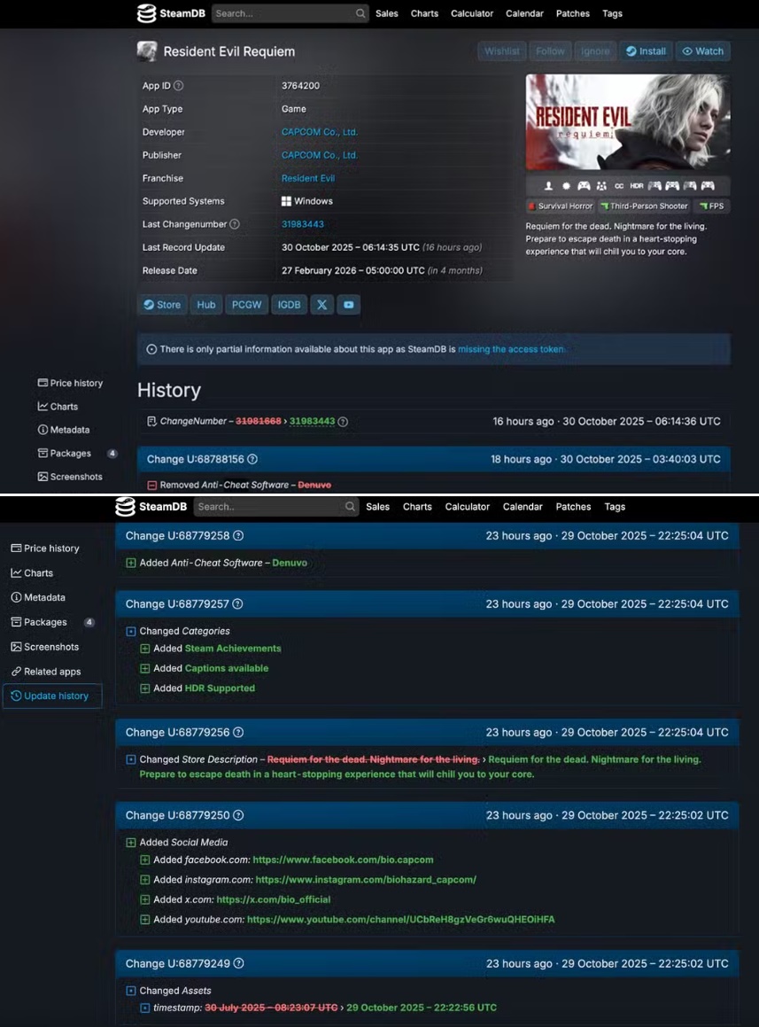 โดยก่อนจะเข้าสู่เนื้อหาก็ขอแสดงความเสียใจ แต่สมน้ำหน้าเหล่านักเล่นเถื่อนทั้งหลาย ว่าคุณอาจจะไม่ได้เล่นเกม Resident Evil Requiem แบบเถื่อนในวันแรก ๆ ที่เกมออก เพราะทาง Capcom บอกว่าตัวเกมจะใช้การป้องกันการเจาะเถื่อนที่เรียกว่า Denuvo ที่จัดเป็นการป้องกันที่แน่นหนามาก ๆ แต่ที่น่าสนใจจริง ๆ ก็คือ โปรแกรม Anti Cheat Software โปรแกรมที่ออกแบบมาเพื่อป้องกันผู้เล่นจากการโกงในเกมออนไลน์ ตามที่ Capcom ยื่นต่อ SteamDB แต่วันต่อมามันก็ถูกลบออกไป แต่มีเหลือหรอว่าชาวบ้านจะแคปไม่ทัน ซึ่งตรงนี้คือจุดที่น่าสนใจ เพราะอย่างที่บอกว่าเกม Resident Evil Requiem มันคือเกมออฟไลน์เล่นคนเดียวทำไมถึงมีโปรแกรมนี้ด้วย