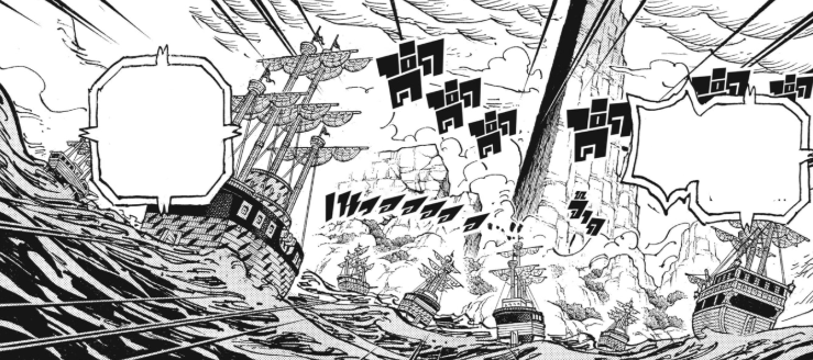 "เยี่ยม... โรเจอร์... ฉันวางแผนจะจับพวกแกทั้งสองคนบนเกาะแห่งนี้ แต่ดูตอนนี้ซิ...!!" การ์ปบ่นผ่านแมลงสื่อสาร โรเจอร์ที่คุยอีกฝั่งก็บอกว่า "เออ แผนเดิมของฉันก็คือพา ชัคกี้ กับสมบัติออกไปจากที่นี่!!! แต่ดูเหมือนว่าเราจะต้องร่วมมือกันสินะ" ทางการ์ปถอนหายใจแรง ๆ และบ่นว่า "ฉันไม่ได้ตั้งใจจะมาที่นี่เลยด้วยซ้ำ!!! แต่การปล่อยให้หมอนี่อาละวาดคงปล่อยให้เป็นแบบนั้นไม่ได้" พอบ่นกันจบทั้งโรเจอร์และการ์ปก็โจมตีร็อคส์อีกครั้ง ขณะเดียวกันเราก็เห็นว่า เรย์ลี่ ก็มาถึงเรือของพวกเขา และพาชัคกี้ไปยังที่ปลอดภัยเรียบร้อย ขณะเดียวกันกลุ่มโจรสลัดโรเจอร์ก็มาถึงเรือพร้อมสมบัติทั้งหมดที่พวกเขาหาได้ เราเห็น เคียว บอกให้ลูกน้องเอาเรือออกจากเกาะ ขณะที่ ชิกิ ก็บอกว่านี่คือจุดจบของกลุ่มโจรสลัดร็อคส์แล้ว