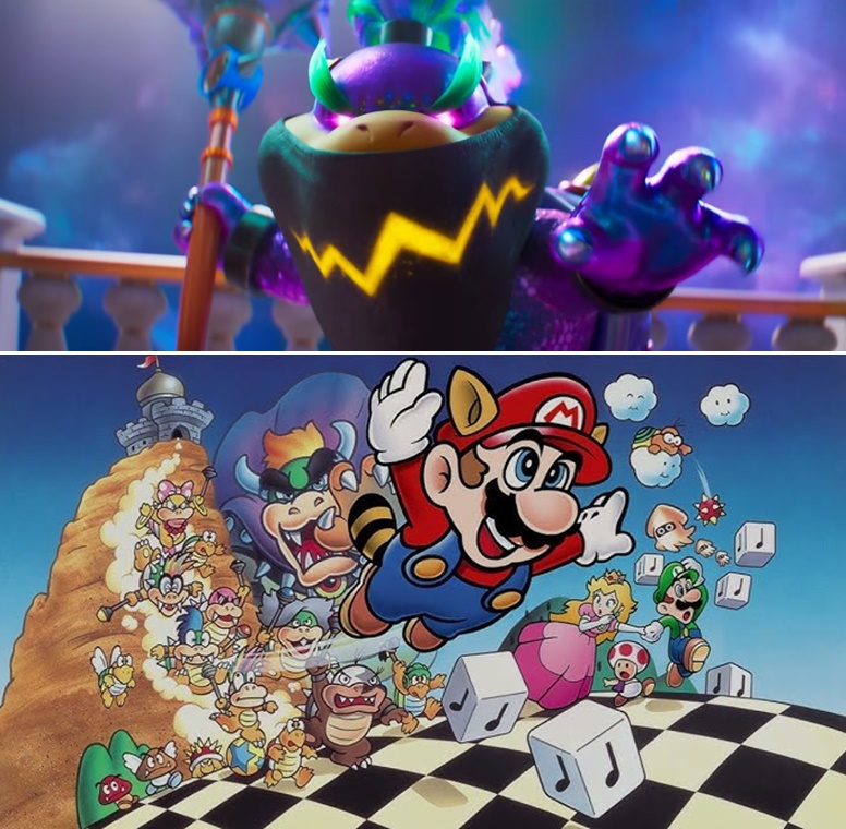 สิ่งแรกที่หลายคนอาจจะลืมไปแล้วว่าในตอนจบของ The Super Mario Movie ภาคแรกนั้นคูป้าได้พ่ายแพ้และถูกจับย่อส่วนจับขังเอาไว้ในโหลแก้ว พอในภาคนี้พี่แกดูจะมีความสุขในปราสาทย่อส่วน (บ้านตุ๊กตา) และยังวาดรูปยามว่าง โดยมี มาริโอ้ กับ ลุยจี้ มาเยี่ยมประจำ ซึ่งพรี่คูป้าเราก็ยังคงรัก เจ้าหญิงพีช ไม่เสื่อมคลาย (เพลงพีชจ๋าฉบับภาษาไทยดังขึ้นมาในหัวเลย) และในตอนนี้เราจะได้เห็นตัวร้ายที่เป็นหุ่นยนต์หมึกยักษ์ที่ถ้าคนเล่นเกม Super Mario Galaxy มาแล้วจะรู้เลยว่าใครเป็นหัวหน้า ขณะที่ดาวต่าง ๆ ในภาพยนตร์ก็จะอ้างอิงตามในเกม คือเป็นดาวดวงเล็ก ๆ ที่เป็นเหมือนด่านย่อม ๆ ให้เราไปสำรวจ เรียกว่าอ้างอิงตามในเกมได้แบบดีงามสุด ๆ