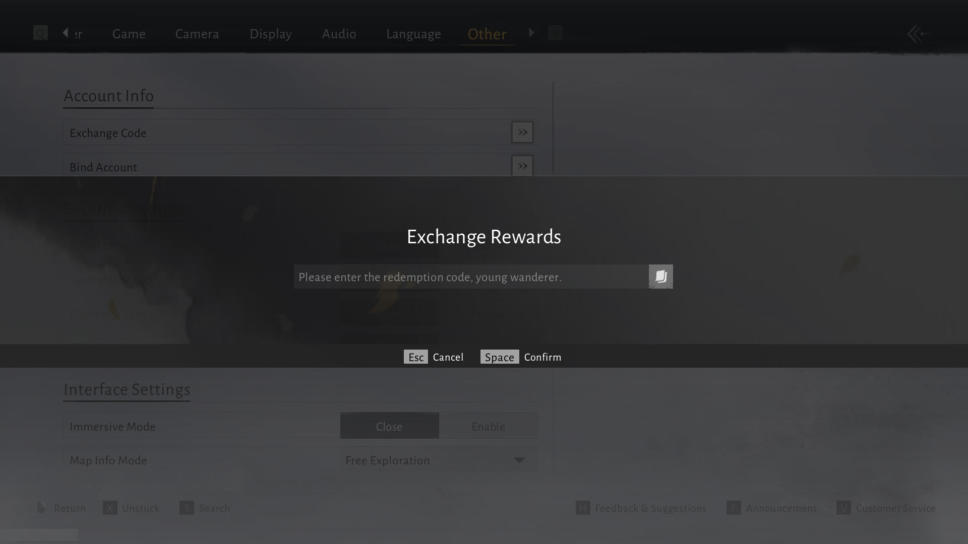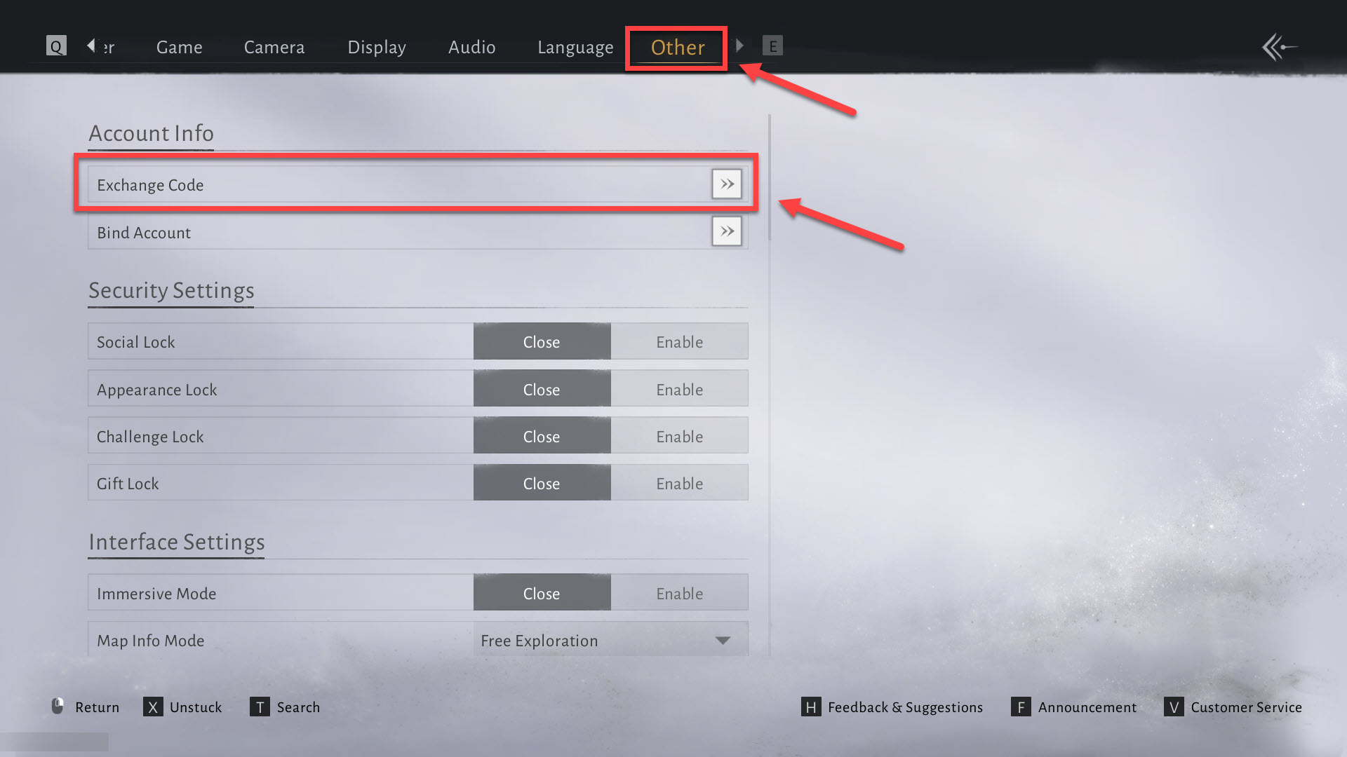 - กดที่ Exchange Code จากนั้นกรอกโค้ดไอเทมในช่องว่างและกดคอนเฟิร์ม