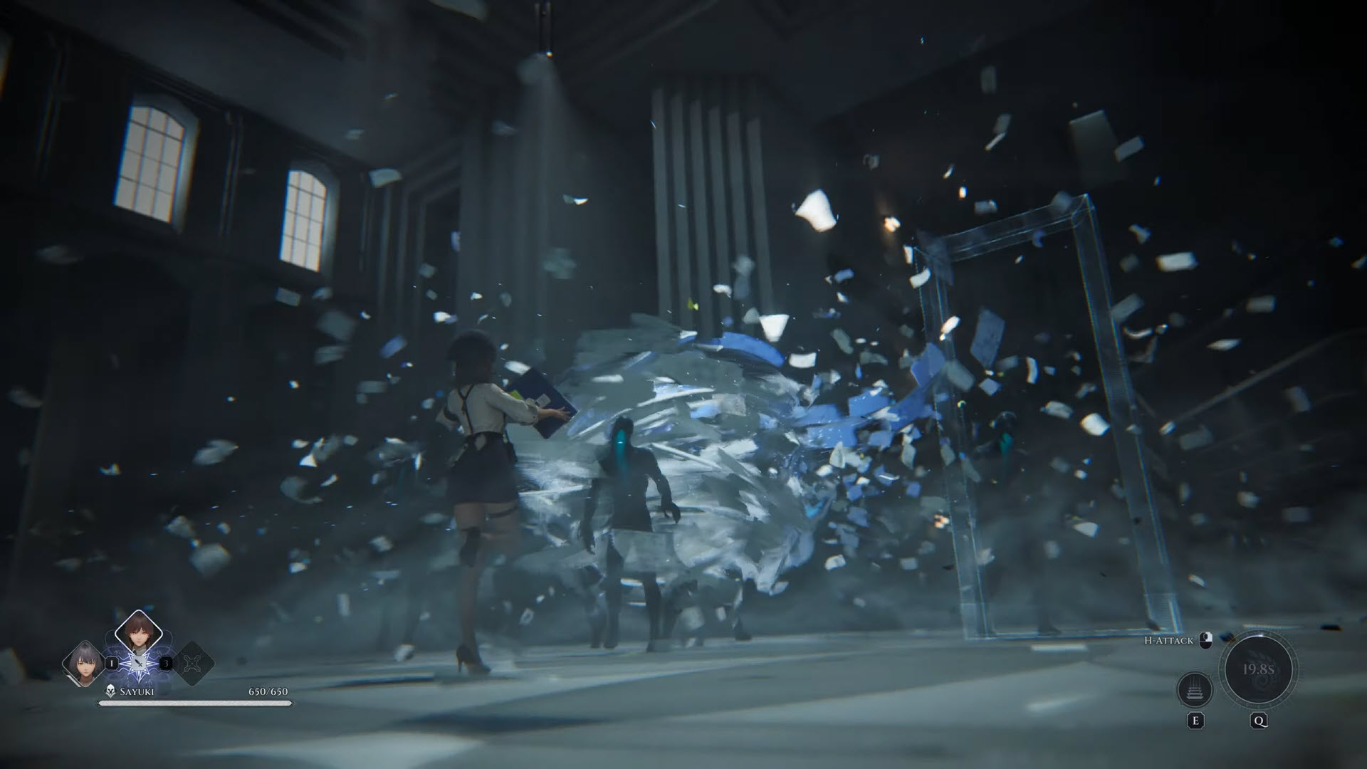 ในตัวอย่างเราจะได้เห็นการนำเสนอสำหนักงานของหน่วยงาน SEAL ระบบฝึกสอนการต่อสู้ ซึ่งใช้การคอมโบการต่อสู้ที่รวดเร็วด้วยร่ม ที่สามารถใช้ขว้างออกไปโจมตี ลอยตัว และใช้ในการเดินทาง อีกทั้งยังได้เห็นเทคนิคการต่อสู้ที่ดูเหมือนการเรียกใช้งาน Persona จากเกม Persona 3 ด้วย