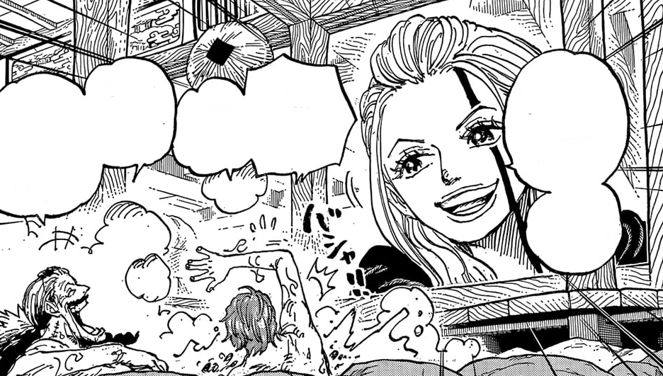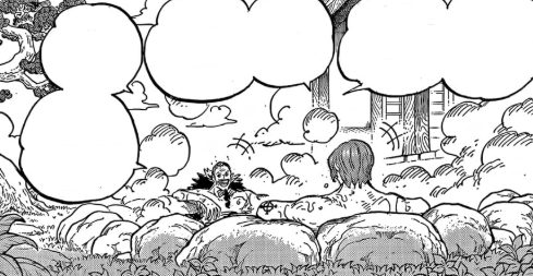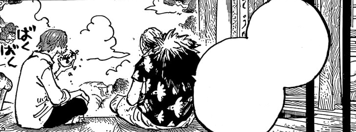 เปิดตอนมาจะเป็นรูปเดียวกับตอนที่ 1,152 ที่ กาบัน กับ แชงค์ส (จะเรียกแชงคูสทุกที) กำลังคุยกันที่บ้านของกาบัน กาบันอธิบายให้แชงค์สฟังว่าเขาได้พบกับ การ์ป และได้รู้จากการ์ปว่า โรเจอร์ มีลูกชาย แชงค์ที่ได้ยินแบบนี้ก็ยิ้มอย่างพอใจและบอกว่า "งั้นลูกชายของกัปตันก็คงเหมือนน้องชายของฉันซินะ" กาบันยิ้มระหว่างแช่น้ำ "ใช่ เหมือนนายกับ บากี้ ที่เป็นเหมือนลูกชายของพวกเรานั่นแหละ" ประมาณว่าทั้งทั้งแชงค์สและบากี้ต่างก็โตมากับโจรสลัดโรเจอร์ทั้งคู่เลยเป็นเหมือนคนในครอบครัว พอโรเจอร์มีลูกเด็กคนนั้นก็เหมือนเป็นน้องชายของแชงค์ส