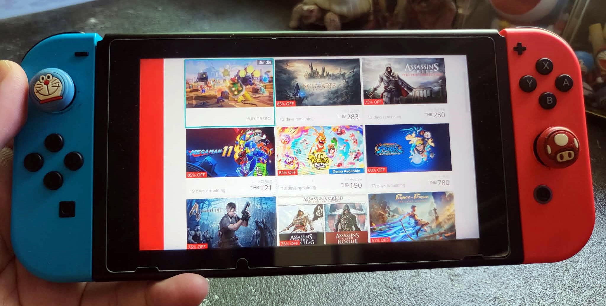 ก่อนจะเข้าสู่เนื้อหาสำหรับมือใหม่ที่เพิ่งซื้อ Nintendo Switch 1 หรือ 2 มาอาจจะไม่ทราบว่า เราสามารถซื้อเกมผ่าน Nintendo สโตร์ไทยได้แล้วในราคาเงินบาท ผ่านการหักเงินจากบัตรเครดิตอย่าง TrueMoney Mastercard ก็สามารถทำได้ (ทีมงานก็ทำแบบนี้) ส่วนการสมัครสโตร์โดยใช้บัตรเครดิตก็ไม่ยุ่งยากลองไปทำกันดู เท่านี้คุณก็จะสามารถดองเกมต่าง ๆ เอาไว้ในเครื่องเพื่อพกพาไปเล่นที่อื่นได้แล้ว ยิ่งใครที่กำลังรอเกมลดราคาอย่าง Hogwarts Legacy ที่สามารถเล่นได้ทั้งบน Nintendo Switch 1 และ 2 ตอนนี้ลดราคาเหลือ 283 บาทเท่านั้น ส่วน Mario + Rabbids Sparks of Hope ก็ลดเหลือ 250 บาท (ทีมงานจัดไปแล้ว)