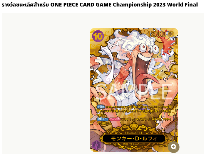 เริ่มจากข่าวต้นทางที่มีการประมูลการ์ด TMonkey D. Luffy One Piece (2024) Tournament Promos OP05-119 2023 Championship World Finals Gold graded CGC Pristine 10 ในราคา $315,600 หรือคิดเป็นเงินไทยราว ๆ 9,926,566 บาท ในการประมูลของ Alt เมื่อวันที่ 4 ธันวาคม 2025 ที่เป็นการทำลายสถิติเดิมของการ์ด One Piece ที่ขายได้ราคาสูงที่สุดไปอย่างขาดลอย ซึ่งการ์ดใบนี้ไม่ใช่การ์ดปกติที่จะมีขายทั่วไป แต่มันคือการ์ดของรางวัลจากการแข่งขัน One Piece Card Game World Finals เมื่อปี 2023 ถือเป็นงานแข่งขันชิงแชมป์โลกครั้งแรกของเกมการ์ด One Piece TCG ซึ่งผู้ชนะเลิศอันดับที่ 1, 2 และ 3 จะได้รับโปรโมการ์ดพิเศษของ Monkey D. Luffy One Piece (2024) Tournament Promos OP05-119 2023 Championship World Finals (ตามในรูป) หนึ่งในสามภาษา ได้แก่ อังกฤษ ญี่ปุ่น และ จีนตัวย่อ (ให้เลือก 1 ใบ) โดยการ์ดจะเป็นสีทอง สีเงิน หรือ สีบรอนซ์ ขึ้นอยู่กับอันดับที่ผู้ชนะได้รับ