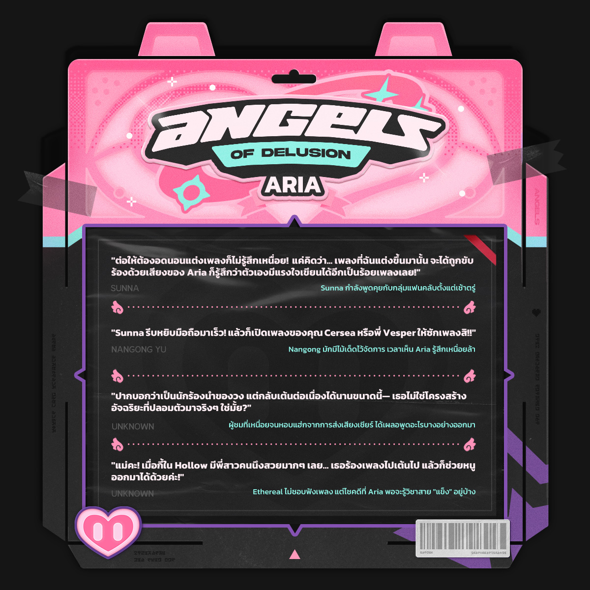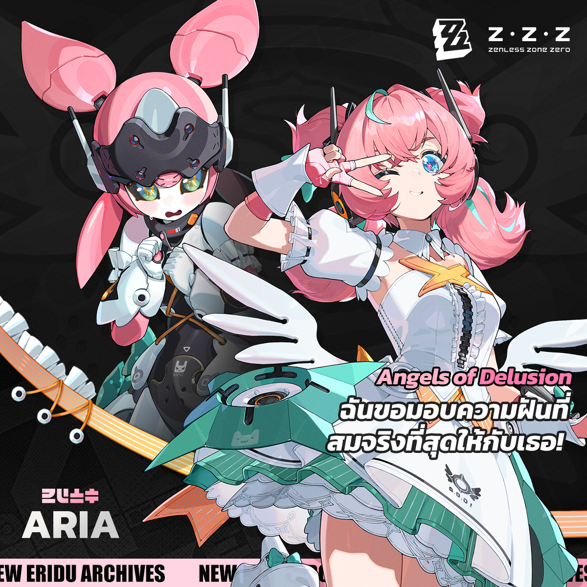 HoYoverse ได้ทำการปล่อย Drip Marketing ตัวละคร Aria แห่งวงไอดอล Angels of Delusion อย่างเป็นทางการ โดยเธอจะมีสองร่างที่เป็นหุ่นยนต์และร่างสาวผมชมพูปกติ มาดูกันว่าเธอจะเสนอเรื่องราว และลักษณะตัวละครออกมาเป็นเช่นไรครับ