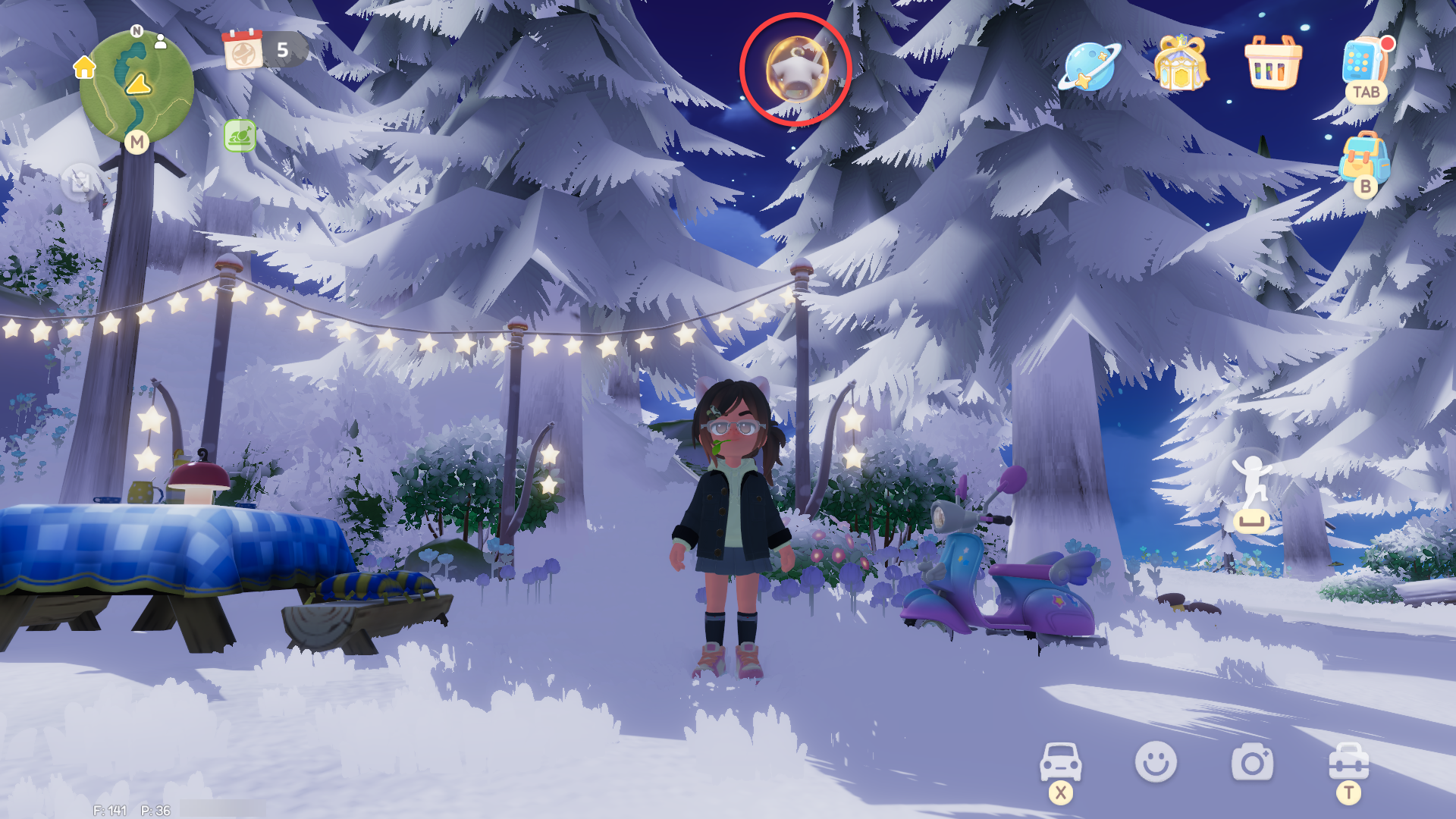ถุงเท้ายาวเรียบง่าย (Simplistic Knee Socks) อยู่บริเวณแท่นกระโดดที่อยู่ทางใต้ของทะเลสาปในป่า บับเบิ้ลจะอยู่บนศาลา ให้เดินขึ้นไปบนขั้นบันไดทางขวามือ แล้วกระโดดขึ้นหลังคาเพื่อขึ้นไปเก็บ