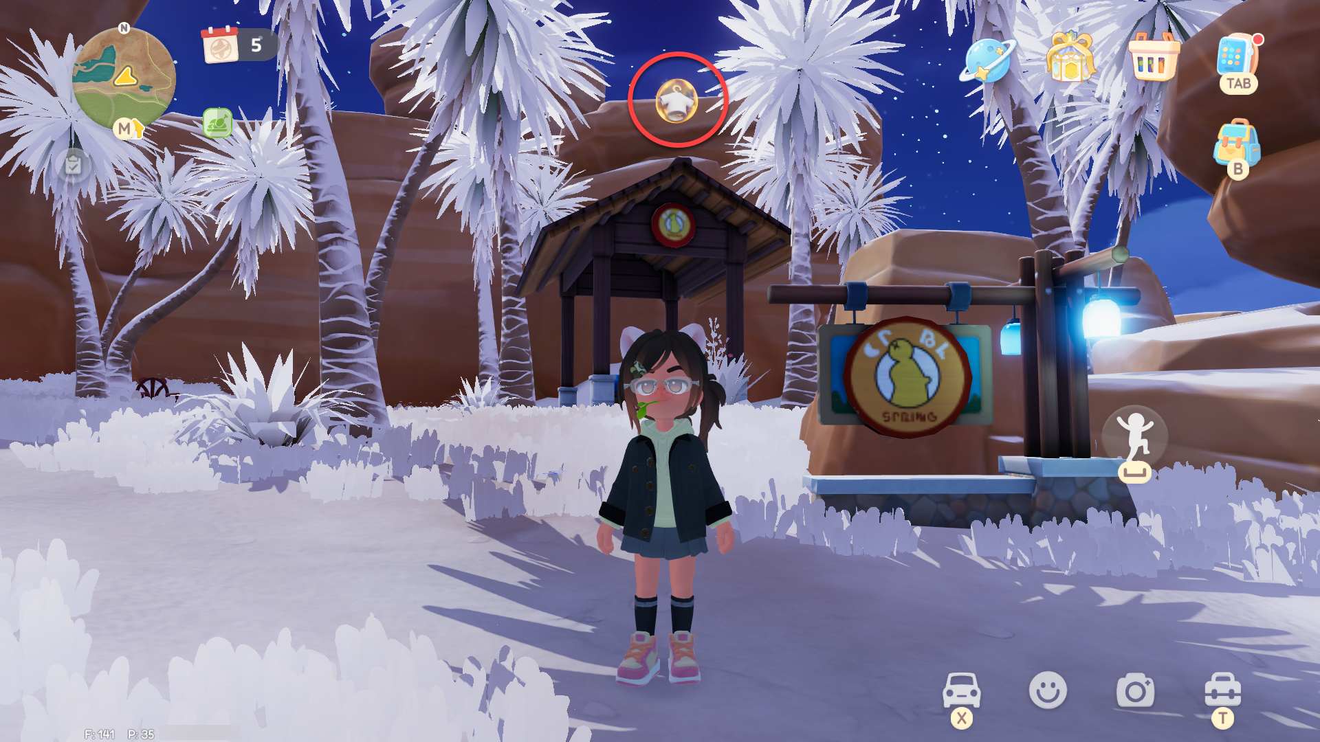 สูทสไตล์นักเรียน (Academic Suit) อยู่บริเวณหอคอยกวางน้อยทางเหนือของทะเลสาปในป่า มองหาจุดตั้งแคมป์ จะเจอกับบับเบิ้ลลอยู่บนเสาไม้ ตรงจุดนี้เราจะต้องกระโดดขึ้นไปบนเต็นท์ก่อน แล้วค่อยกระโดดต่อขึ้นไปบนเสา จากนั้นเดินไปตามสายไฟเพื่อไปเก็บบับเบิ้ลบนเสา
