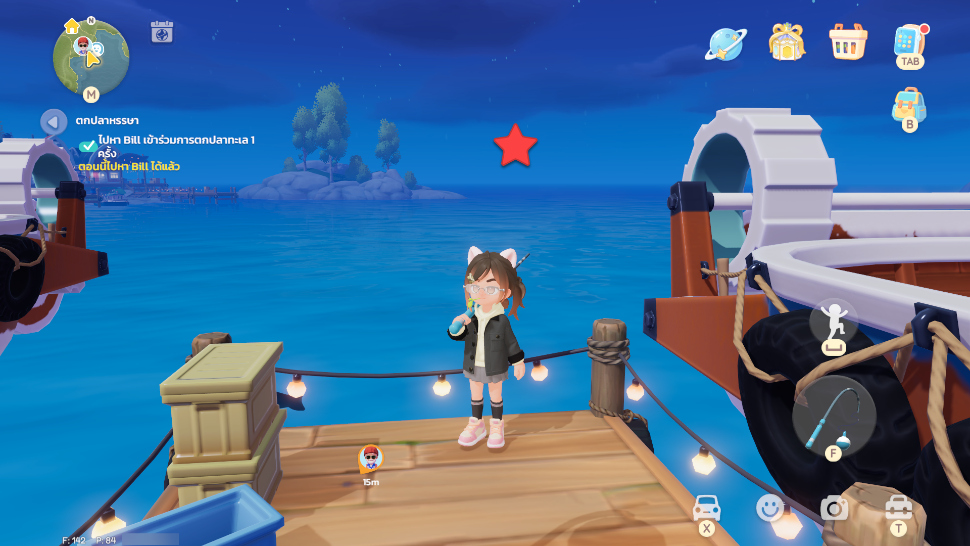 กระเป๋าเมสเซนเจอร์สีสลับ (Color-Blocked Messenger Bag) อยู่บริเวณท่าเรือ วิธีเก็บ ให้ไปพูดคุยกับ Bill ชาวประมงเพื่อเริ่มกิจกรรมตกปลา จากนั้นให้ขึ้นเรือเพื่อเริ่มกิจกรรม เมื่อเรือเริ่มออกจากท่าและขยับเข้าใกล้บับเบิ้ลก็จะสามารถเก็บได้ตอนนั้นนั่นเอง