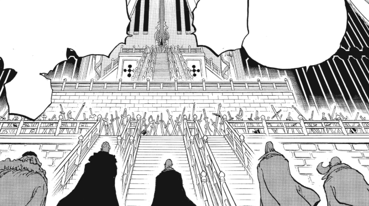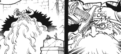 เรื่องราวจะต่อจากตอนที่แล้ว โดยเล่าผ่านฝั่งของฮัจรูดินที่ขึ้นลิฟต์ไปยังด้านบน ส่วน ลูฟี่ กับ โลกิ นั้นยังอยู่ข้างล่าง (พระเอกของฝั่งโชเน็นต้องมาช้าหน่อยเป็นเรื่องปกติ) ระหว่างที่ลิฟต์กำลังขึ้นไปด้านบน กาบัน ก็เล่าสถานการณ์ต่าง ๆ ให้ทุกคนฟังว่าตอนนี้เกิดอะไรขึ้น ไม่ว่าจะเป็นการจับตัวเด็ก ๆ เป็นตัวประกัน พวกยักษ์ที่ถูกเปลี่ยนเป็นปีศาจ ไปจนถึงความสามารถของเหล่าอัศวินเทพที่ต้องใช้ ฮาคิราชันย์ เท่านั้นจึงจะกำจัดพวกอัศวินเทพที่เป็นอมตะได้ พอลิฟต์ขึ้นไปถึงด้านบนทุกคนก็เจอกัย คาชิ สมาชิกของกลุ่มโจรสลัดนักรบยักษ์บาดเจ็บสาหัส