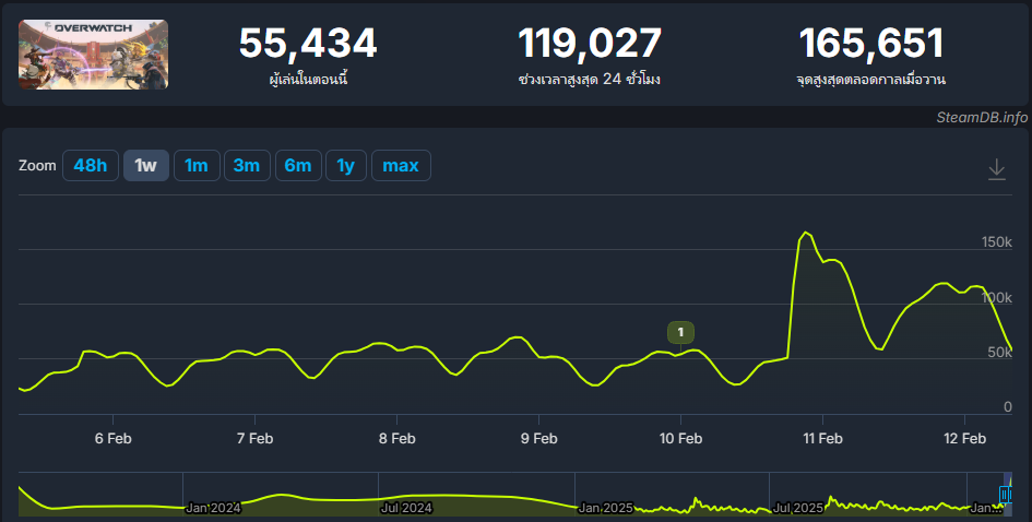 นับตั้งแต่เข้าสู่ปี 2026 เป็นต้นมา วงการเกมก็เรียกว่าเดือดกันมาตั้งแต่เดือนมกราคมกันเลยทีเดียว จนมาถึงเดือนกุมภาพันธ์ที่จู่ ๆ เกมที่หลับ ๆ ตื่น ๆ อย่าง Overwatch 2 ก็ลุกขึ้นมาประกาศเปลี่ยนแปลงสิ่งที่หลายคนต้องขยี้ตาว่า Overwatch 2 เนี้ยนะจะทำแบบนี้ นั่นคือการตัดเลข 2 ออกไปจากชื่อพร้อมกับเพิ่มตัวละครฮีโรใหม่ไปทีเดียวถึง 5 ตัว ซึ่งตามปกติ Overwatch จะขี้เหนียวฮีโรมาก ๆ กว่าจะมีตัวละครใหม่ทีก็รอกันรากงอก ขณะที่ฝั่ง Marvel Rivals จัดไปเดือนละ 1 ตัวจึงไม่น่าแปลกใจที่ Marvel Rivals จะมีผู้เล่นแซง Overwatch 2 แบบทิ้งห่าง จนเมื่อ Overwatch เริ่มเปลี่ยนแปลงตัวเองครั้งใหญ่เมื่อวันที่ 10 ที่ผ่านมา ก็เล่นเอาแฟนเก่าแฟนใหม่แฟนที่ทิ้งไปแล้วต่างก็กลับมาเล่น Overwatch อีกครั้งจนตอนนี้ Overwatch มียอดผู้เล่นรวมสูงสุดกว่า 165,651 คน (นับเฉพาะ steam db) เรามาดูเรื่องราวนี้กัน