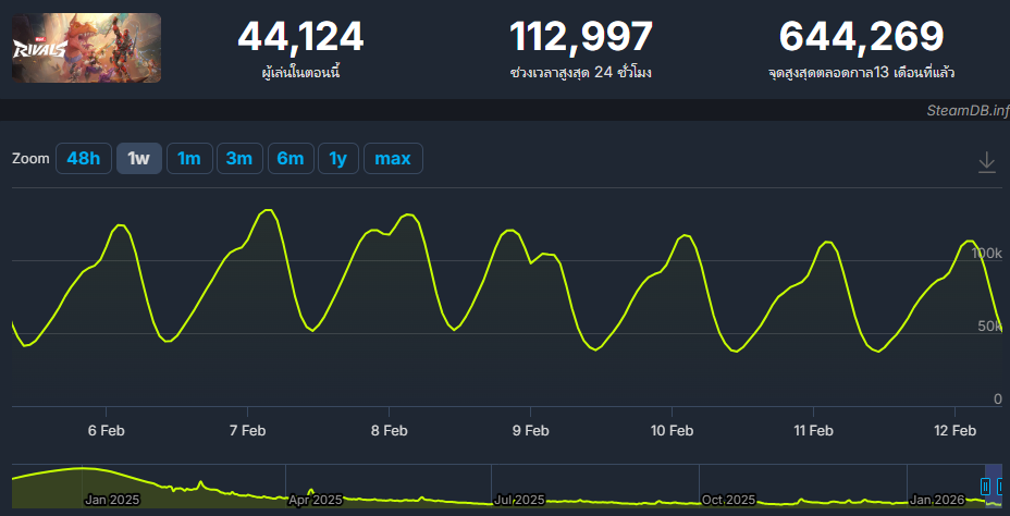 ขณะที่ทาง Marvel Rivals ในช่วงเวลาเดียวกันช่วง 24 ชั่วโมงสูงสุดทำได้ 112,997 คนห่างกันถึง 6,030 คนเลยนทีเดียว ในส่วนของคนเล่นตอนนี้ทำไปได้ 44,124 คนซึ่งจำนวนผู้เล่นห่างกันถึง 11,310 คนซึ่งนี่อาจจะเป็นครั้งแรกที่ทาง Overwatch แซง Marvel Rivals ได้ และอย่าลืมว่านี่เป็นแค่บน Steam เท่านั้นยอดบนคอนโซลที่ไม่มีสถิติอ้างอิงอาจ ที่นั่น Marvel Rivals จะมากกว่าหรือน้อยกว่าก็ได้ แต่ที่เรารู้ตอนนี้ก็คือทาง Marvel Rivals ไม่ได้นิ่งนอนใจเรื่องนี้ รีบปล่อย Elsa Bloodstone ฮีโรตัวต่อไปของ Marvel Rivals พร้อมกำหนดปล่อยให้เล่นในวันที่ 13 กุมภาพันธ์แบบทันทีทันใด ซึ่งในวันนั้นน่าจะมีโหมดใหม่และสิ่งต่าง ๆ มาดึงแฟน ๆ แน่นอน
