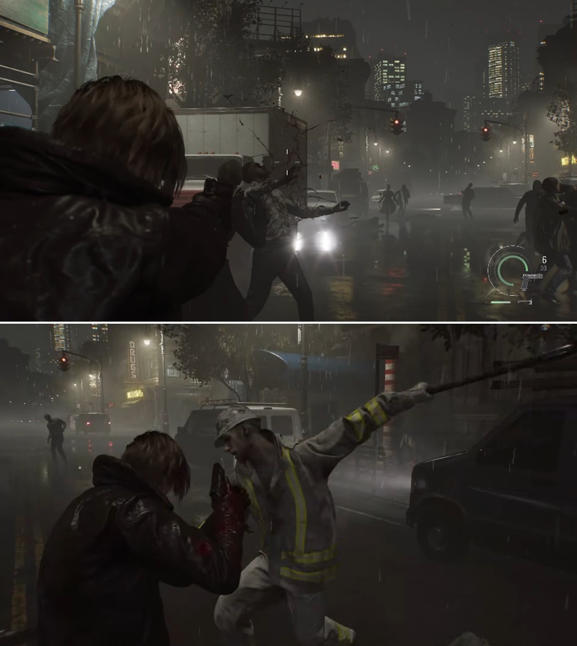 คราวนี้มาดูฉากใหม่ ๆ ที่ถูกเปิดเผยออกมาในตัวอย่างล่าสุดนั่นคือฉากที่ Leon ต้องสู้กับซอมบี้ภายในเมืองพร้อมกับความวุ่นวายแบบใน Resident Evil 6 นอกจากนี้ก็ยังมีการเปิดเผยซอมบี้ใหม่ที่เป็นหัวโต ๆ ที่มีความแข็งแกร่งมากขึ้นเมื่อมันฟื้นมาจากความตาย พอเอาตัวอย่างทั้งหมดมารวมกันหลายคนเลยเดาว่า Resident Evil Requiem ภาคนี้น่าจะมีหลายฉากให้เราได้ไปสำรวจ แต่จะไม่ใช่ Open World แต่จะเป็นฉากพื้นที่ขนาดใหญ่ ไม่ใช่เส้นทางที่เราต้องเดินไปข้างหน้าเรื่อย ๆ หรือสถานที่ปิดที่เราอยู่ในที่ที่เดียวแต่เดินไปเดินมาแบบภาคก่อน