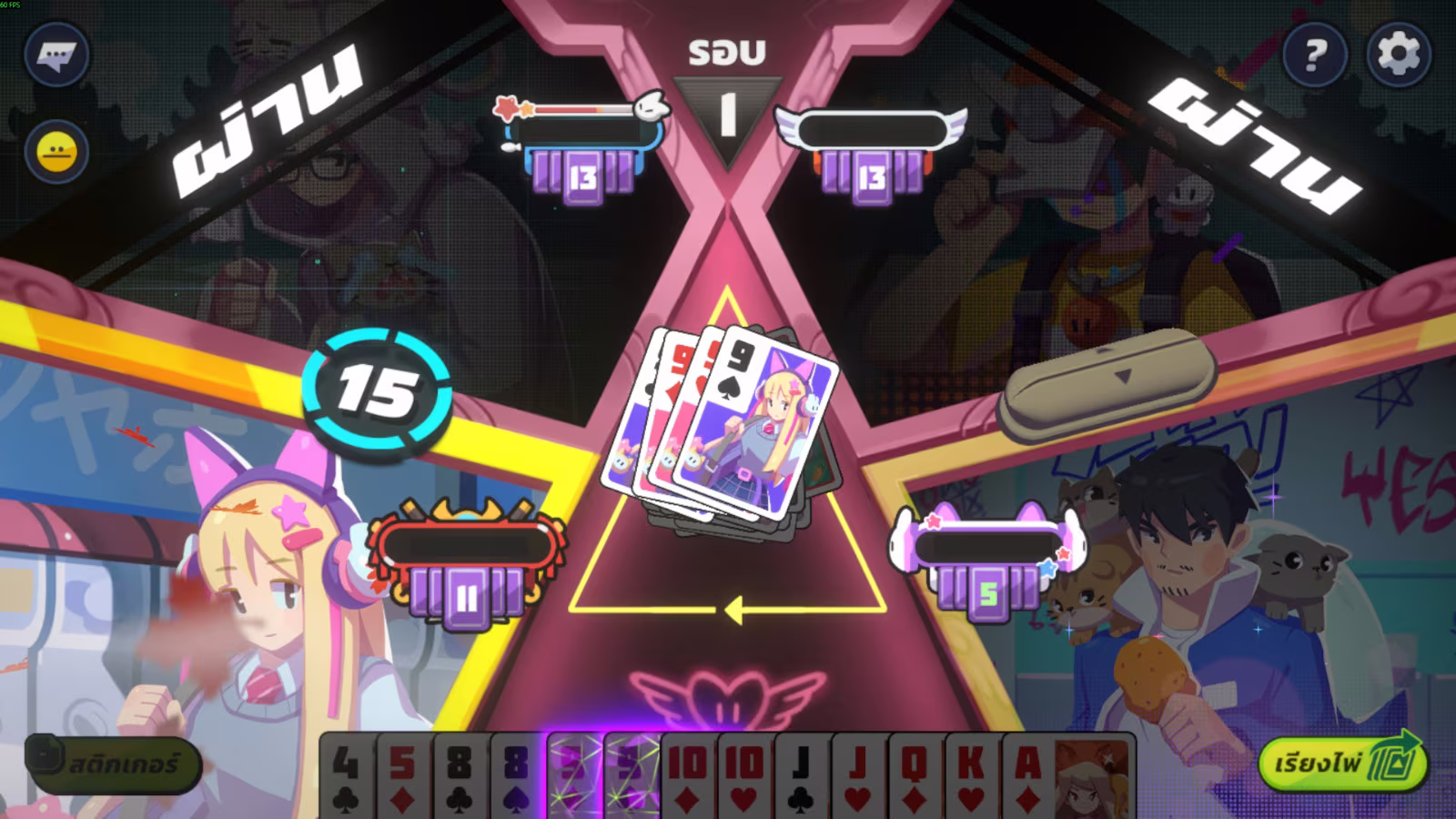 - หลังจากผู้เล่นทำการลงไพ่ตบคู่ต่อสู้ด้วยการ์ด 3 ใบ (Triple) ผู้เล่นทุกคนยกเว้นคนที่ตบจะต้องทำการจั่วการ์ดคนละ 1 ใบ จากกองรวมที่ถูกใช้งานไปแล้ว (สุ่ม)