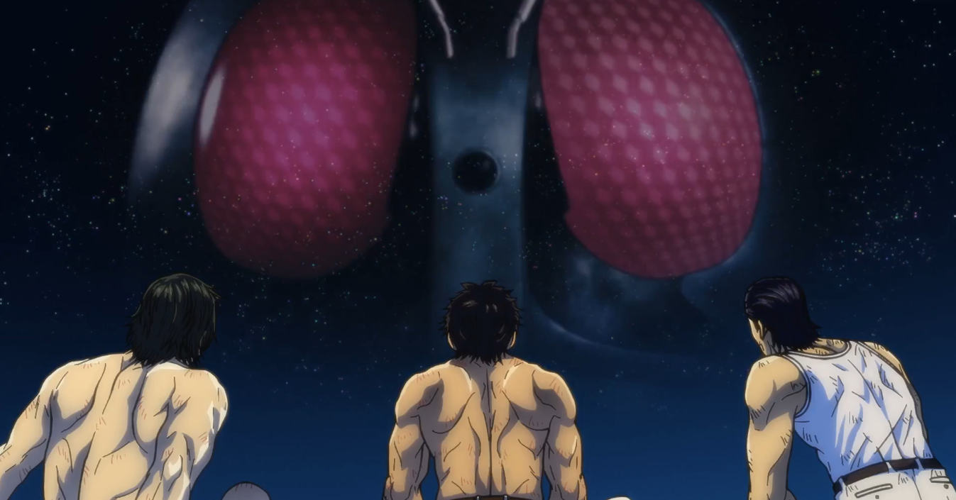 ต่อมาคือเกร็ตเล็ก ๆ ของ Kamen Rider V3 ในตอนที่ 2 สำหรับคนที่ไม่ทราบ Kamen Rider V3 นั้นเสียพ่อแม่ไปจากเหล่าช็อคเกอร์ เขาเลยขอให้ Kamen Rider 1 กับ 2 ช่วยผ่าตัดดัดแปลงตัวเองเพื่อแก้แค้น ซึ่งพอ V3 ได้พลังมาเขาก็ได้รับการชี้แนะจากรุ่นพี่อยู่ไม่นาน Kamen Rider 1 กับ 2 ก็ต้องสละชีวิตช่วย V3 ตอนนั้นใครเห็นก็ว่าไม่รอด แต่ตราบเท่าที่ตัวละครยังได้รับความนิยมยังไงก็ไม่ตุย แต่การตัดบทหมายเลข 1 กับ 2 ไปเพื่อให้ V3 โดดเด่นและเติบโตด้วยตัวเองนั่นคือการดำเนินเรื่อง และพอตอนท้ายก็ให้รุ่นพี่กลับมาช่วยรุ่นน้องจนเป็นธรรมเนียมปฏิบัติของซีรีส์ Kamen Rider ที่ทำมาจนถึงตอนนี้