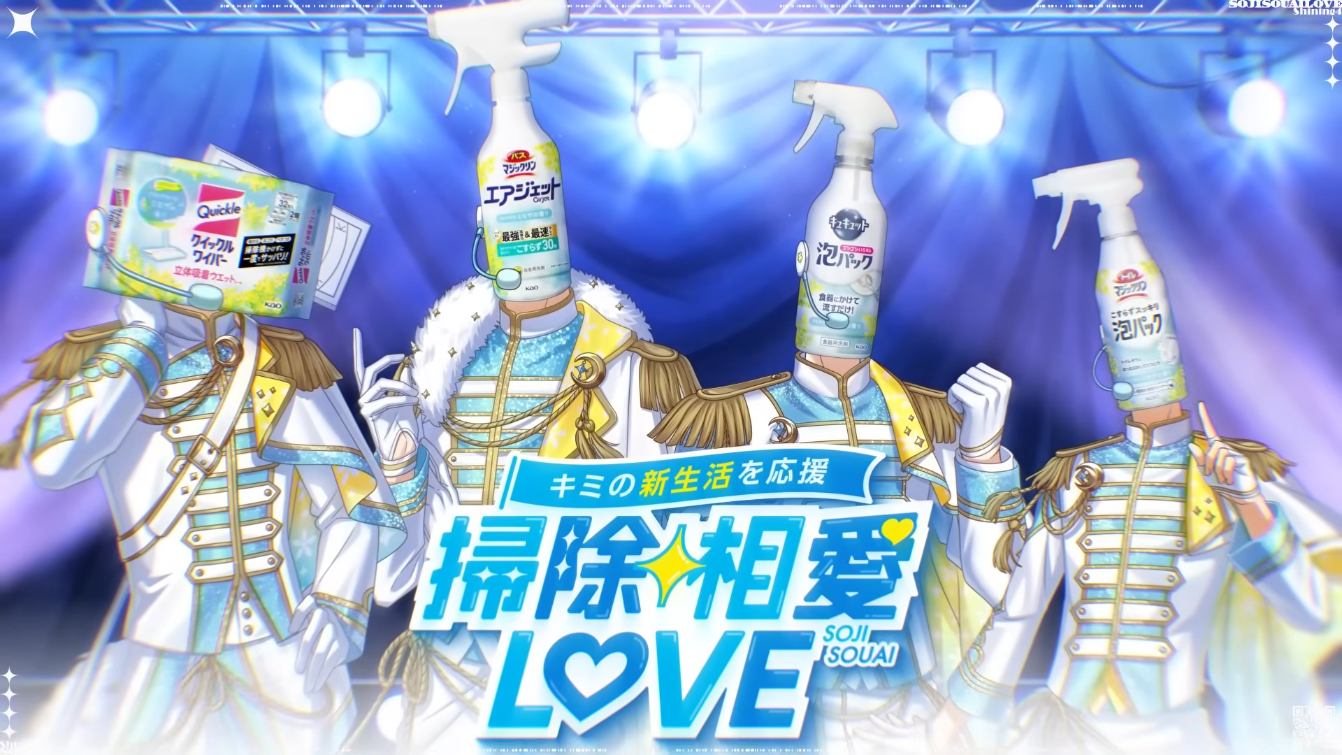 Souji Souai Love เกมจีบหนุ่มสุดแปลกแหวกแนวขั้นสุด ที่เปิดโอกาสให้เราได้ทดลองจีบบรรดาอุปกรณ์ทำความสะอาดจากญี่ปุ่น ใช่แล้วอ่านไม่ผิดหรอก จีบอุปกรณ์ทำความสะอาดแถมยังเป็นไอดอลหนุ่มรูปหล่อเสียด้วย โดยเราจะได้รับบทเป็น "โปรดิวเซอร์มือใหม่" ที่ต้องเข้าไปจัดการการแสดงเปิดตัวของวงไอดอลหนุ่มหน้าใหม่ "Shining4"