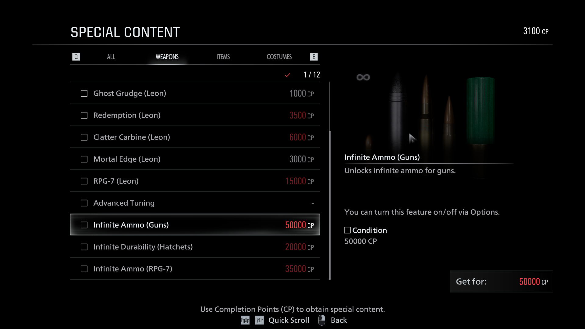 เกมแนวเอาตัวรอดสยองขวัญในยุคปัจจุบันย่อมมาพร้อมกับระบบจำกัดทรัพยากร Resident Evil Requiem เองก็เป็นเช่นนั้น แต่หลังจากที่เราสามารถเคลียร์เกมได้แล้วหนึ่งครั้ง จะสามารถปลดล็อคโหมดใหม่และเนื้อหามใหม่ ๆ ให้เราได้รับชมผ่านการใช้ Completion Points หรือ CP ในการปลดล็อคใช้งาน จะดีแค่ไหนถ้าเราสามารถใช้กระสุนได้ไม่จำกัด