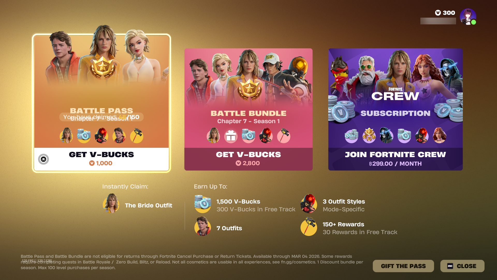 นอกจากนี้ยังมีการปรับโบนัส V-Bucks ที่จะได้รับจากการซื้อ Battle Pass ด้วย จากเดิมที่ BP จะต้องซื้อในราคา 1,000 V-Bucks ซึ่งจะได้คืนมา 1,500 V-Bucks เมื่อปลดล็อค BP ครบทั้งหมด แต่หลังอัปเดต Battle Pass จะวางขายในราคา 800 V-Bucks และจะได้โบนัสคืนเพียง 800 V-Bucks เท่านั้น หรือก็คือ ไม่ได้รับเพิ่มเติมแล้ว แต่จะได้คืนเท่าทุนที่จ่ายไปนั่นเอง