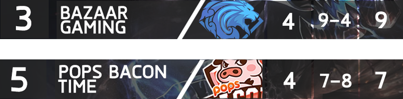 จากสถานการ์ของทั้ง 2 ทีมนั้นทีม Bazaar Ga้ming รั้งอันดับ 3 ของตารางอยู่ในตอนนี้ด้วยการมี 9 คะแนน จากแข่งขันทั้งหมด 4แมตซ์ ส่วน Pops Bacon Time พวกเขาอยู่ที่อันดับที่ 5 ของตาราง จากการแข่งขันทั้งหมด 4แมตซ์ เช่นเดียวกันครับ เรียกได้ว่าถ้าใครสามารถชนะแมตซ์นี้ได้น่าจะมีการขยับปรับเปลี่ยนอันดับกันอย่างแน่นอน!