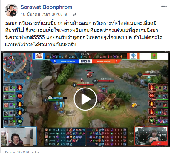 ซึ่งแน่นอนว่าการเข้ามาของโค้ชเอก REDRUBY นั้นต้องเสริมความแข็งแกร่งให้ตัวทีมได้เป็นอย่างมาก เพราะโค้ชเอกเองในช่วงที่พักงานเกี่ยวกับวงการอีสปอร์ตอยู่นั้นเจ้าตัวก็ได้หันมาทำหน้าที่ในการวิเคราะห์เกมผ่านทาง Facebook ของโค้ชเอก Redruby Hongbaoshi ซึ่งทางผู้เล่นโรมมิ่ง/ซัพพอร์ตของทีม Bacon อย่าง Moss ก็ได้ออกมาชมการวิเคราะห์ของโค้ชเอกแถมยังบอกไว้อีกว่าอยากร่วมงานกับโค้ชเอก!