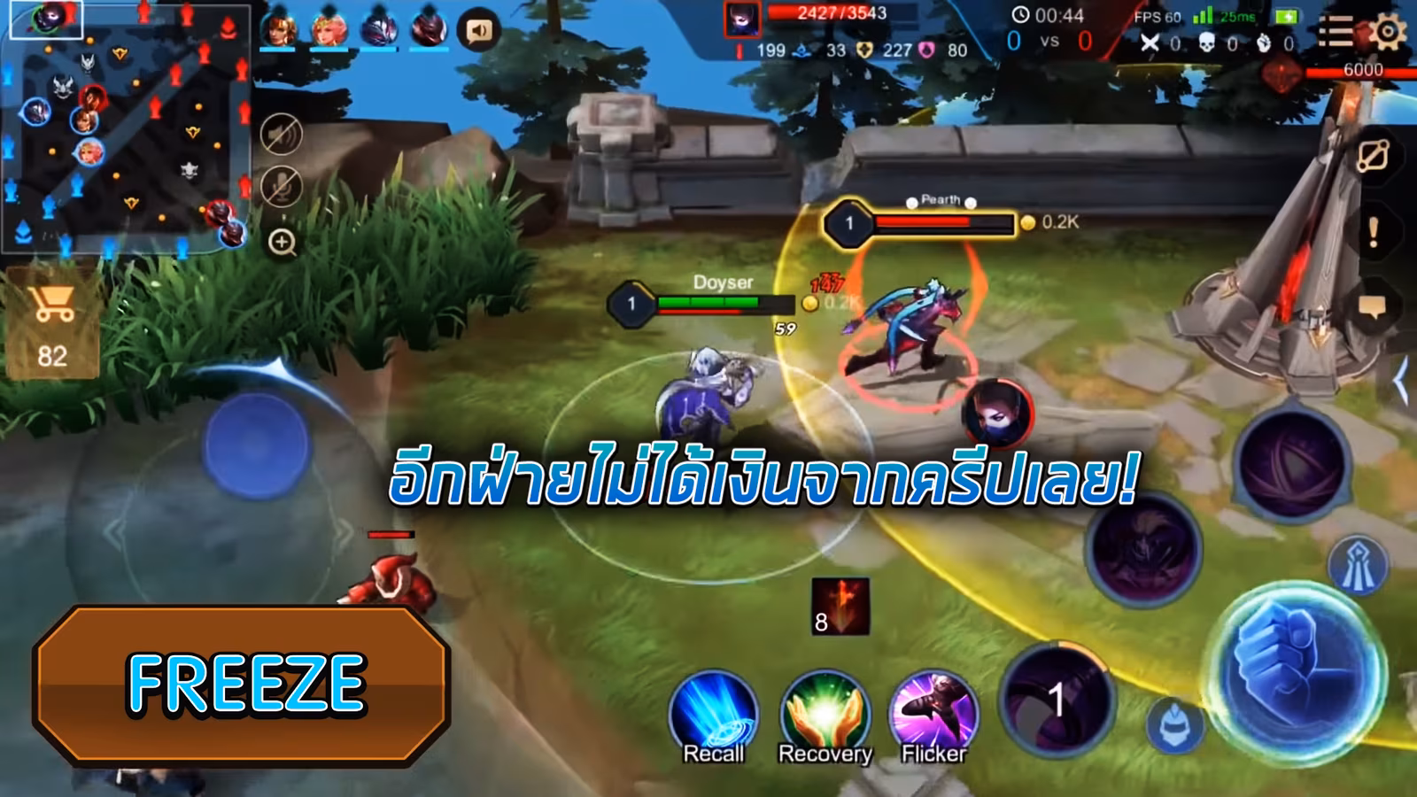 ซึ่งเทคนิคนี้คือการไม่ดันเลนหรือไม่ตีครีปนั่นเอง แต่จะเอาเวลาไปกดดันฝ่ายตรงข้ามเพื่อไม่ให้เข้ามาในรัศมีที่ได้รับเงินนั่นเองครับ โดยเราต้องมั่นใจว่าฮีโร่ทีเราหยิบมาต้องเก่งกว่าฝ่ายตรงข้าม ซึ่งจะทำให้ฝ่ายตรงข้ามการเงินตามเราเยอะมากๆ เพราะไม่ได้เงินจากครีปนั่นเองครับ และถ้าตอดฝ่ายตรงข้ามจนอีกฝ่ายต้องกลับบ้าน ให้เราทำการดันครีปเข้าป้อม เพื่อให้ป้อมยิงครีปตายไปแบบฟรีๆได้เลย!