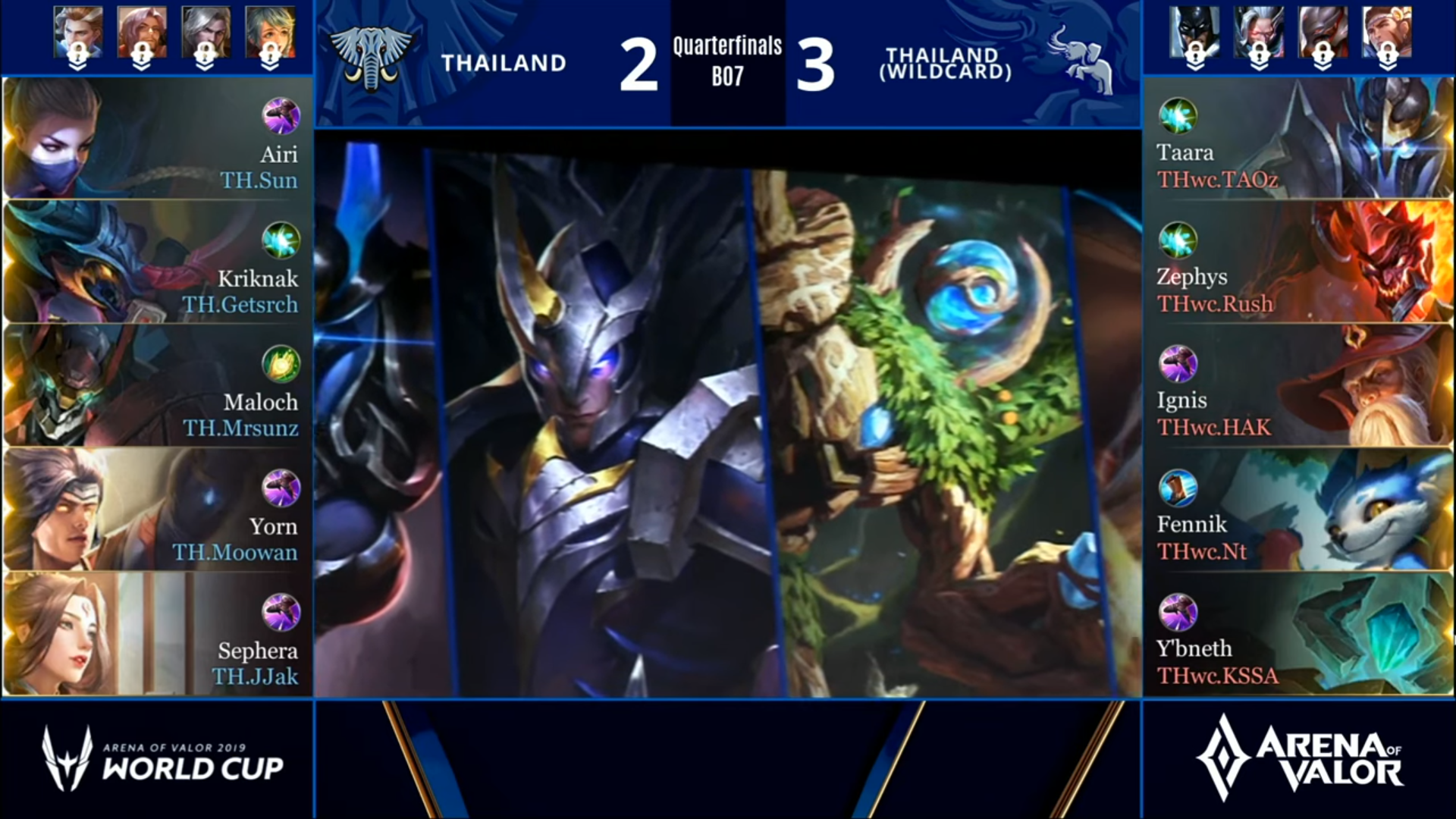 ส่วนทางฝั่งของ THwc แม้ว่าจะได้ฮีโร่ที่ไม่ได้อยู่ในระดับท๊อป แต่ก็วางแผนในการเลือกมาเป็นอย่างดี ทั้ง 2 ตัวล้วงอย่าง Taara และ Zephys ที่เด่นทั้งเรื่องแยกดันและการทำลายแนวหลังทั้งคู่ ตัว Ignis ที่สามารถรับมือกับ Maloch จากการสร้างความเสียหายเป็นเปอร์เซนต์เลือดได้เป็นอย่างดี ส่วน 2 ตัวสุดท้ายอย่าง Fennik และ Y’bneth เป็นสองฮีโร่ที่คอมโบกันเพื่อสร้างพื้นที่ในการเล่นได้เป็นอย่างดี ตัวของ Fennik เอง ยังเป็นฮีโร่ประเภทแครี่ที่ไม่ได้กลัว Kriknak ตัวถนัดของ Getserch มากมายเท่าไหร่ด้วย