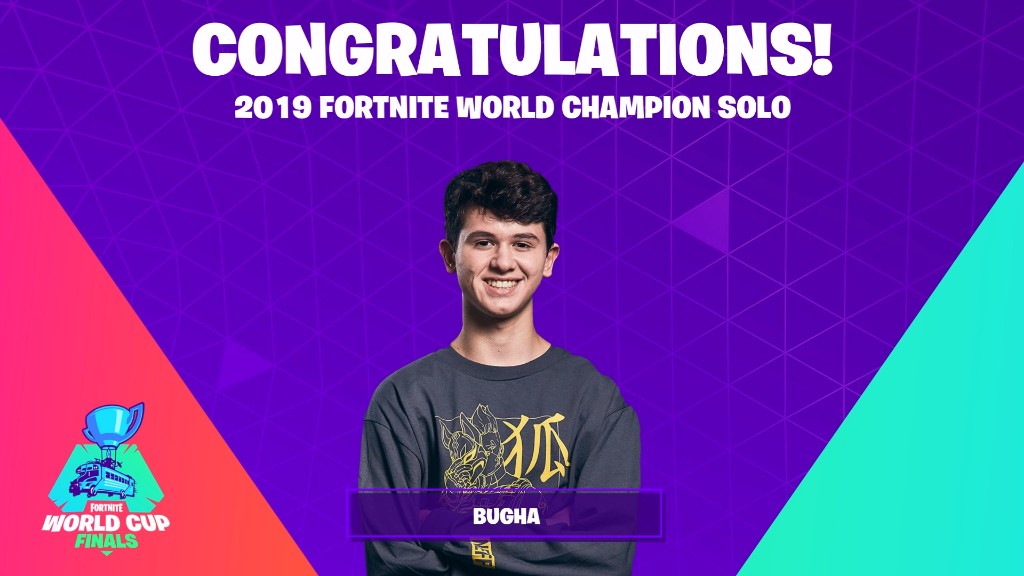 เรียกได้ว่าม้ามืดอีกหนึ่งคนที่คว้าแชมป์ในรายการนี้ไป ซึ่ง Bugha ได้เรียกขวัญกำลังใจจากเกมแรกที่เริ่มการโดดร่มของการแข่งขันเจ้าตัวก็ขอแชมป์ไปก่อน 1 แถมด้วยอีก 9 Kill ทำให้คะแนนของเขานั้นอยู่สูงสุดไปตั้งแต่เกมแรก ถึงแม้เกมที่สองเจ้าตัวจะจบ Placement ไม่ดีนักจบอันดับที่ 90 ถึงเวลาโดดร่มในเกมที่สาม Bugha ของัดฟอร์มคืนกดอันดับ 10 คว้าแต้มไปครองก่อนที่จะสังหารอีก 2 ตัวทำให้เจ้าตัวมีแต้มห่างขึ้นไปอีก และในเกมที่ 4 และ 5 เจ้าตัวได้คะแนนรวม 47 แต้มและอันดับสองของตารางอย่าง Pslam มีแต้มเพียง 32 แต้มเท่านั้นเรียกได้ว่าการทิ้งห่างนี้ ส่งผลให้ Bugha เล่นเกมสุดท้ายเพียงแค่เข้า Top 10 เขาก็มีสิทธิชนะการแข่งขันนี้ไปเลยก็ว่าได้