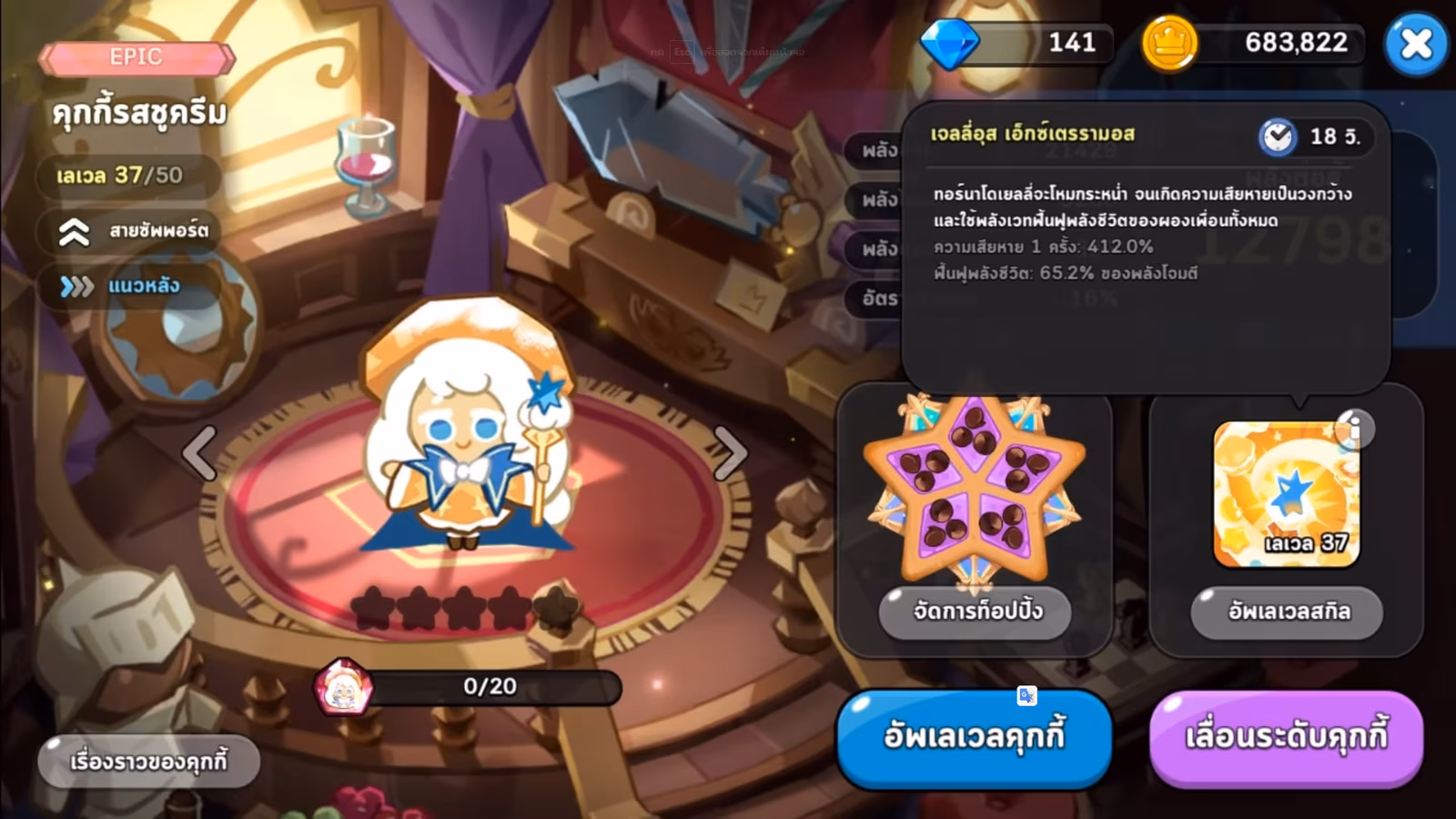 Cookie Run : Kingdom อีกหนึ่งตัวละครที่กำลังมาแรงที่สุดในตอนนี้คงหนีไม่พ้นน้องคุ้กกี้ชูครีม คุ้กกี้สายซัพพอร์ตที่มาพร้อมด้วยรูปร่างที่น่ารักน่ากอด แถมที่สำคัญตัวน้องคุ้กกี้ชูครีมยังมีความสามารถที่จัดได้ว่าเก่งสุดๆ เลยก็ว่าได้จากสกิลของตัวคุ้กกี้ชูครีมอย่าง เจลลี่อุส เอ็กซ์เตรรามอส