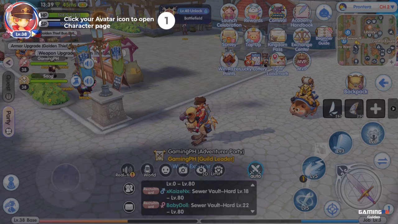 ในการเปลี่ยนรูปอวาตาร์และกรอบข้อความของคุณ ทำได้ง่ายๆด้วยการคลิกที่ รูปตัวละครของคุณ ทุกอยู่บริเวณมุมซ้ายบนของหน้าจอ