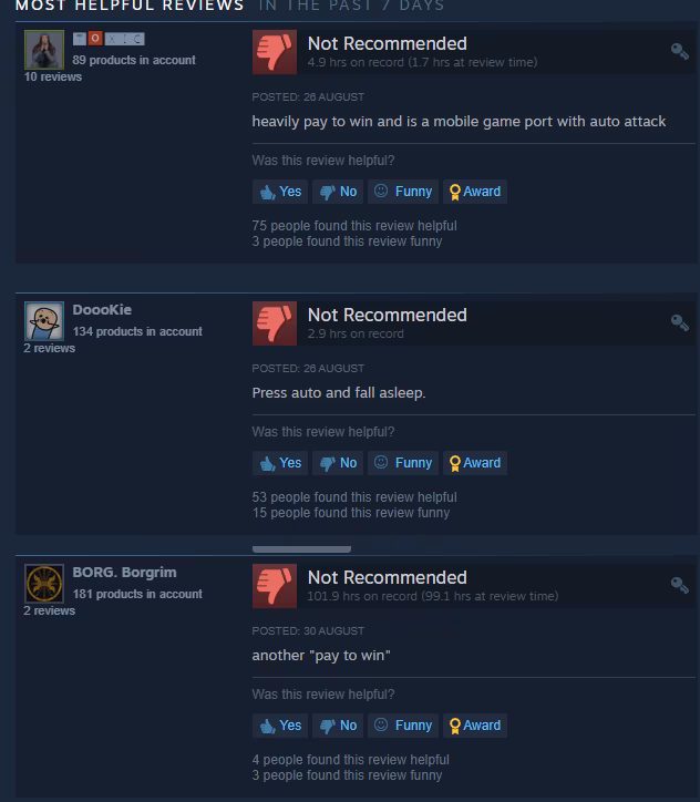 แต่ถึงอย่างนั้นด้วยตัวเกมจำเป็นที่ต้องใช้การเติมเงินเป็นจำนวนมาก และยังเน้นไปที่การเล่นแบบ Auto นอกจากนี้ตัวเกมยังเป็นเกมจากมือถือที่ Port ลงมา PC แบบยกชุดแบบยกมาทั้ง UI เรียกได้ว่ามักง่ายแบบสุด ๆทำให้ผู้เล่นหลาย ๆ คน พากัน Review ในแง่ลบกันเสียส่วนใหญ่ ถึงแม้ว่าตัวเกมจะรองรับระบบ Cryptocurrency ก็ตาม