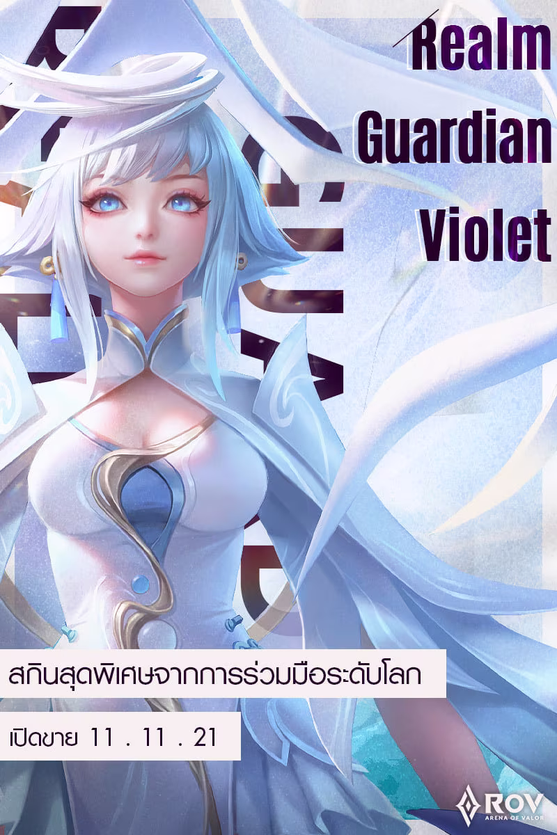 สกินใหม่ RoV Realm Guardian Violet จะมาพร้อมกับเอฟเฟคต์ Lobby Animation สุดอลังการและเอฟเฟคต์วาร์ปพร้อมกับเปลี่ยนท่วงท่าและรูปลักษ์ของสกิลทั้ง 3 ของ Violet ใหม่หมดจดโดยจะอิงจากการที่เธอได้กลายเป็นผู้พิทักษ์ที่ได้รับพลังแห่งมังกรขาวมาใช้งานนั่นเอง โดยตอนนี้สกิน Realm Guardian Violet ก็ได้วางขายในตัวเกมเป็นที่เรียบร้อยแล้วตอนนี้
