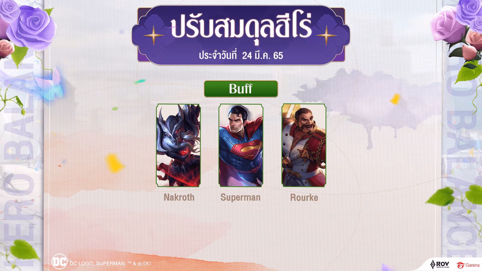 ตอนนี้ทางตัวเกม RoV บ้านเราก็ได้อัปเดตแพทช์ใหม่เข้าสู่ตัวเกมเป็นที่เรียบร้อยไปแล้วครับในเมื่อวานนี้โดยในแพทช์นี้ก็ต้องบอกว่ามันอะไรที่น่าสนใจเยอะแยะไปหมดเพราะถือว่าเป็นแพทช์ใหญ่ส่งท้ายเดือนมีนาคมก็ว่าได้ครับ และเมื่อมันเป็น RoV แพทช์ใหญ่แน่นอนว่าภายในตัวแพทช์นี้ทางทีมงานก็ไม่พลาดที่จะทำการปรับสมดุลเหล่าฮีโร่ต่าง ๆ ขึ้นมา โดยในแพทช์นี้ก็ได้มีการบัฟฮีโร่ขึ้นมาทั้ง 3 ตัวครับได้แก่ Nakroth, Rourke และ Superman