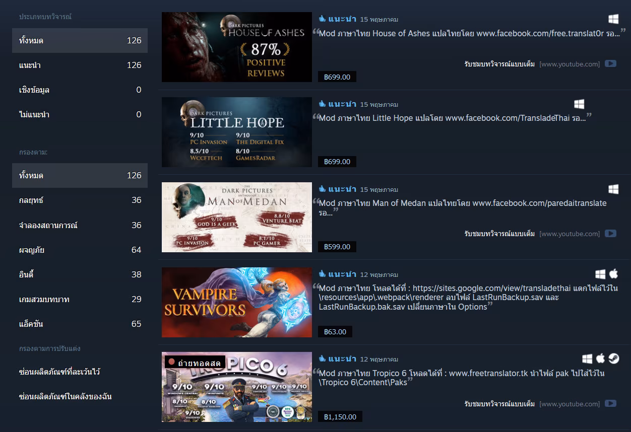 และอย่างที่เพื่อน ๆ ทราบกันว่าการทำ Mod ภาษาไทยให้กับเกมต่าง ๆ กำลังได้รับความนิยมอย่างมาก และไม่ใช่เพียงแค่เจ้าเดียวเท่านั้นที่ออกมาสร้างผลงานต่าง ๆ เพราะยังมีอีกหลาย ๆ เจ้าเกิดขึ้นมาใหม่อยู่ทุก ๆ วัน ซึ่งจะตามทั้งหมดก็คงจะเป็นไปได้ยาก ทำให้มีผู้ใช้ท่านหนึ่งสร้างกลุ่มภายใน Steam ที่ชื่อว่า ModSubThai ขึ้นมา และจะทำการ Update เกมต่าง ๆ เข้า List พร้อมบอกสถานที่ Download ของ Mod ต่าง ๆ ให้อย่างครบถ้วนอีกด้วย