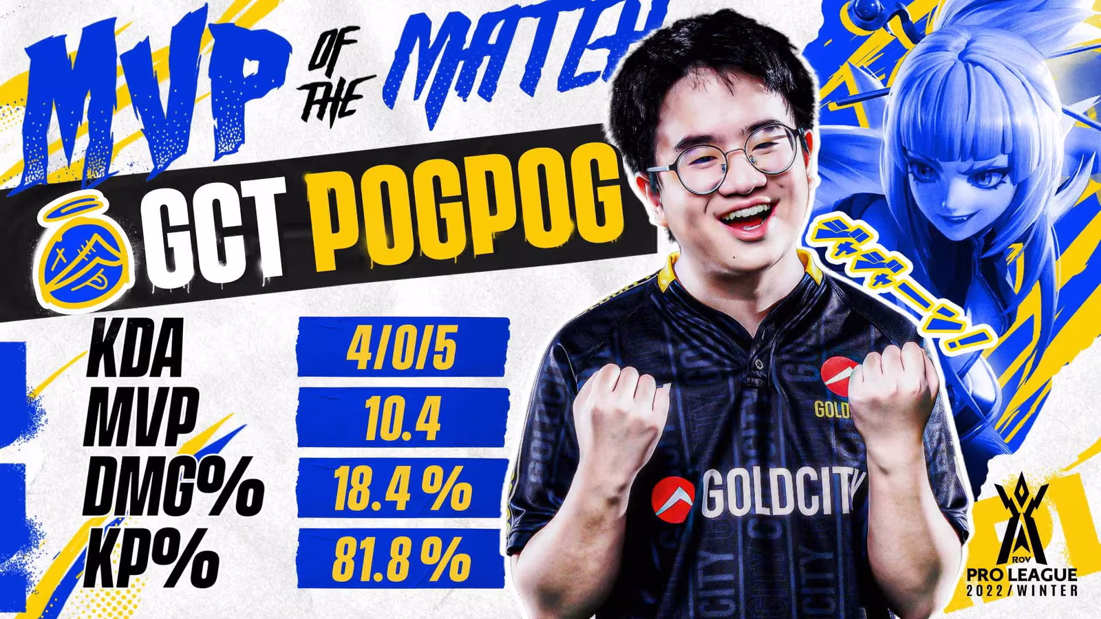 แถม Pogpog ยังได้สร้างฉายาเทพเจ้า 5 เกมให้กับทีม Goldcity Esports อีก เพราะในแมตซ์ต่อมาหลังคว่ำ Bacon Time ไปได้ เจ้าตัวก็มีคิวต้องมาชนกับ Valencia CF Esports และบทสรุปที่ออกมาก็คือ Pogpog นำทัพ Goldcity Esports เอาชนะไอค้างคาวไปได้ 3-2 เกม แถม Pogpog ยังได้รับรางวัล MVP of the Week ของการแข่งขันในสัปดาห์ทีผ่านมาอีกด้วยครับ