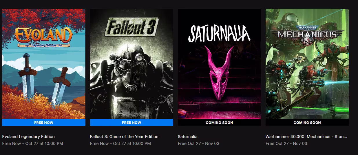 สำหรับตัวเกมถัดไปของ Epic Game Store ที่จะแจกให้ในสัปดาห์หน้า ก็ได้ออกมาเปิดเผยอย่างเป็นทางการ และสามารถรับได้ตั้งแต่ วันที่ 27 ตุลาคม - วันที่ 3 พฤศจิกายน ซึ่งประกอบไปด้วย
